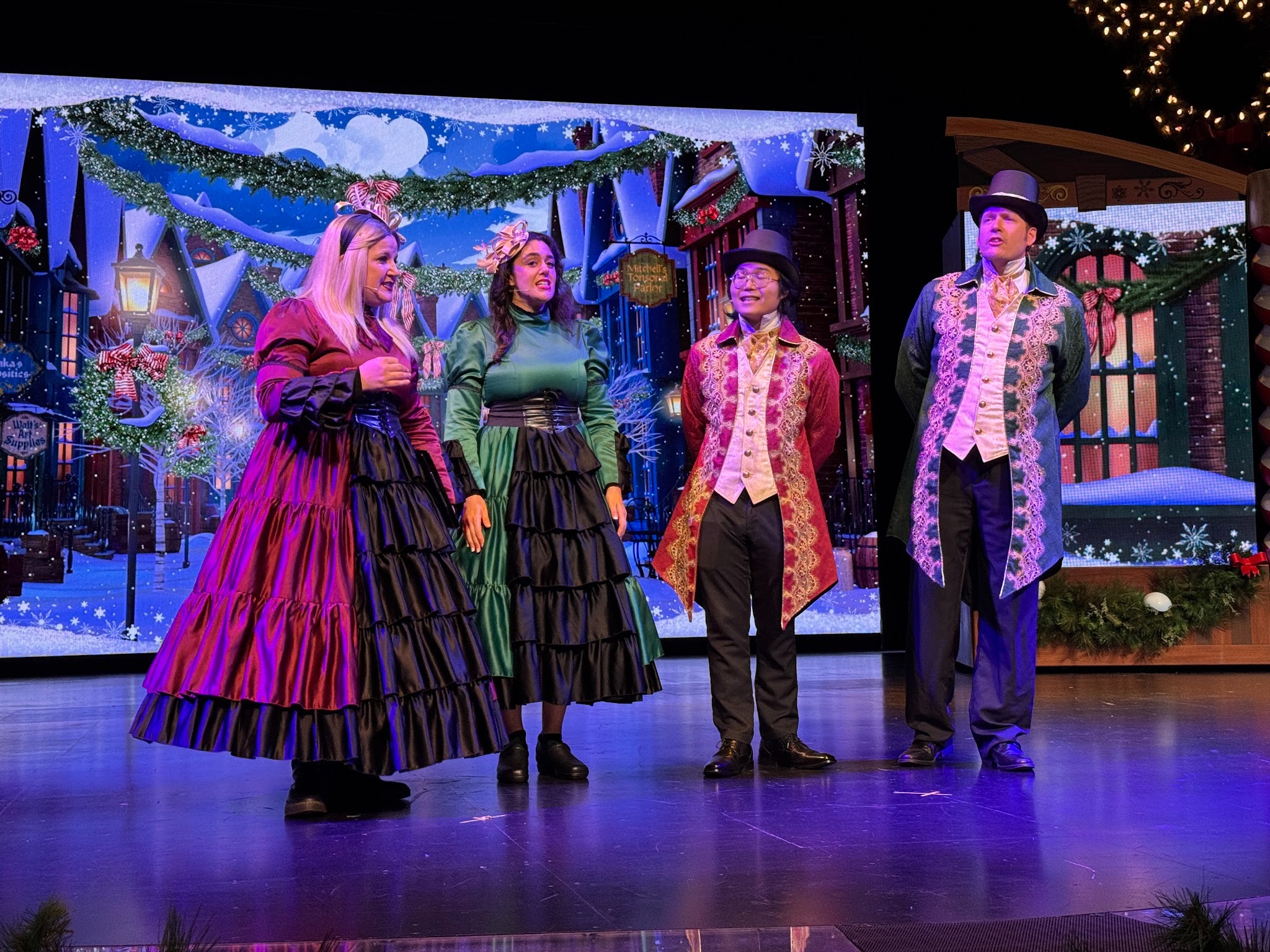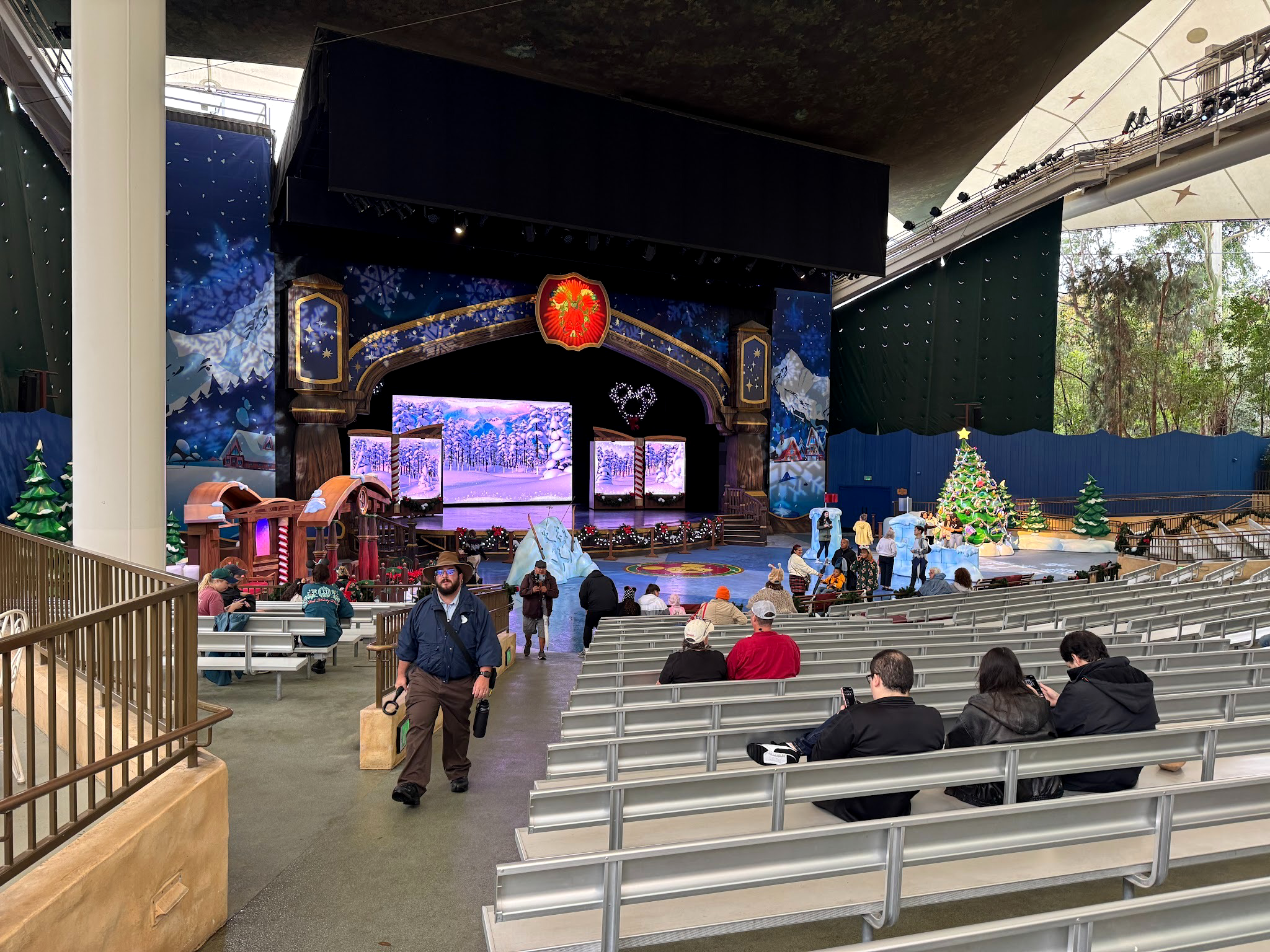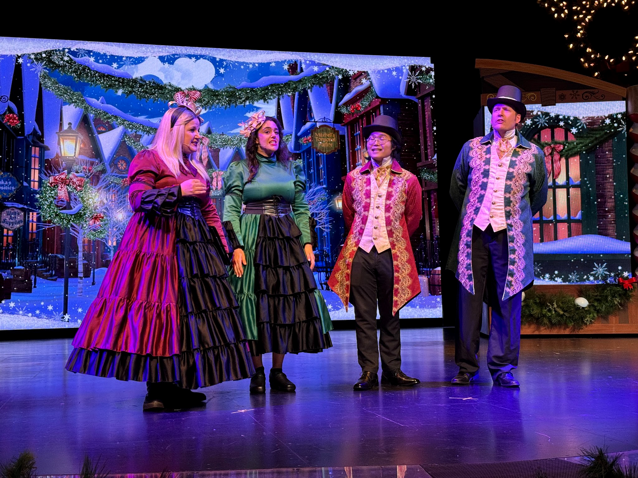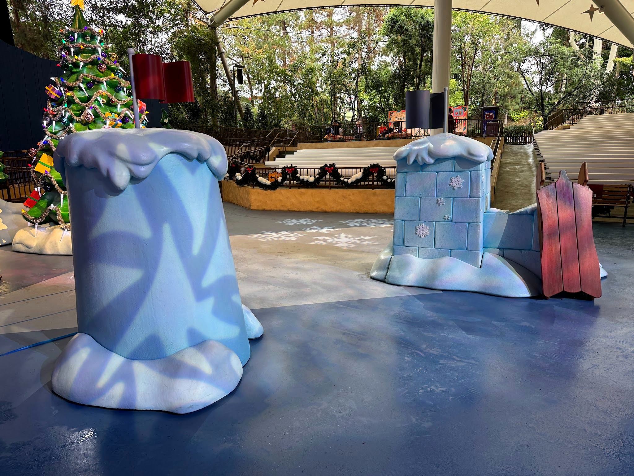 The stage itself features plenty of holiday decor - even if it is still blatantly the stage for “Mickey and the Magical Map” with a thin veil if you know what existed there prior.