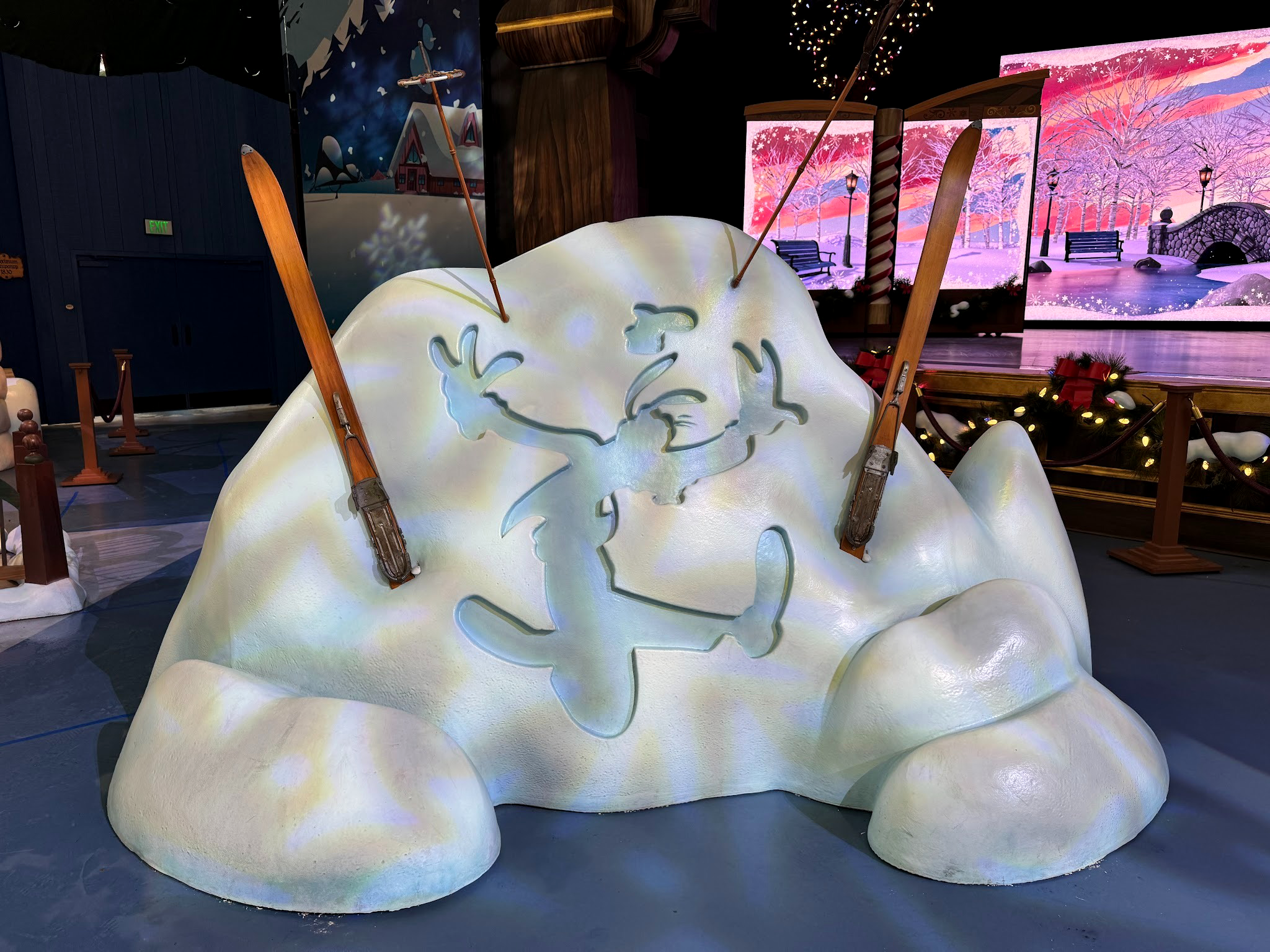 Fun props are peppered throughout the space, allowing the perfect backdrop for some festive holiday photos. One prop even features the outline of Goofy in the snow with some skis nearby, referencing the classic animated short, The Art of Skiing.