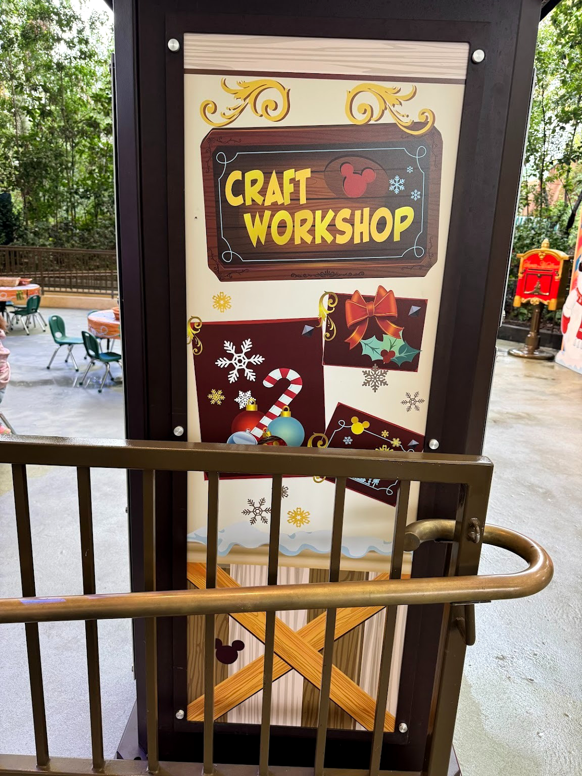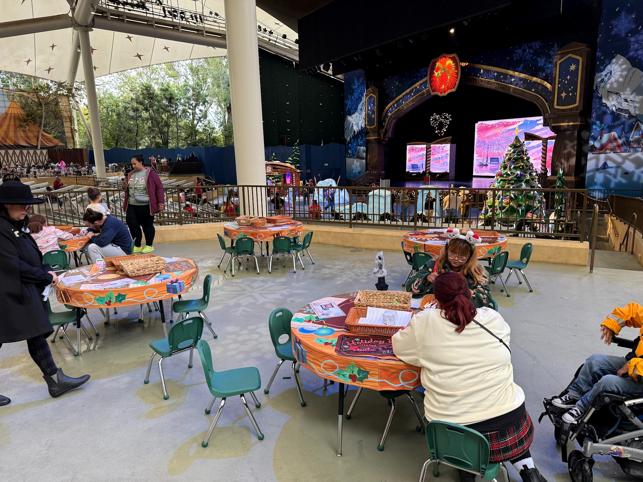 Toward the top of the theater, guests can hang out and find some fun crafts, activities, and games to participate in, perhaps while waiting for their favorite character to show up or enjoy the festive ambience.