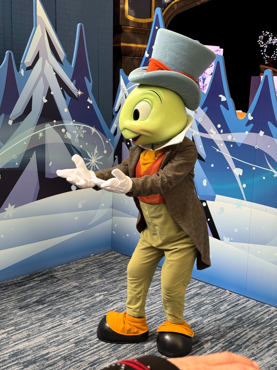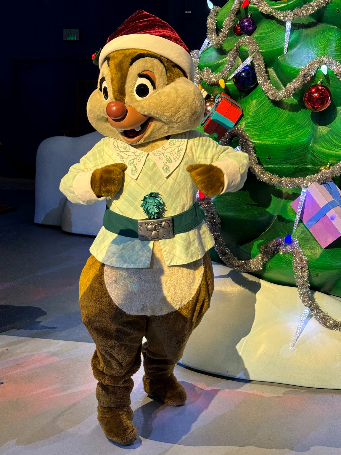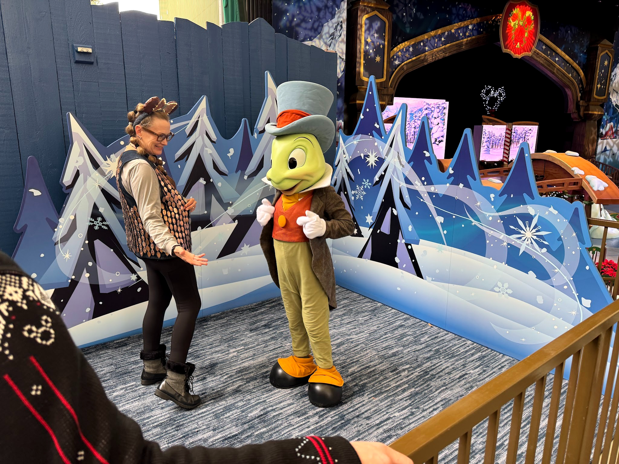Those who have experienced the Pixar Pals Playtime Party in recent months and years might have some kind of an idea of what this experience as a whole is, though this has a lot less Pixar and a lot more seasonal fun! Guests can find characters throughout the space. On our visit, we spotted Jiminy Cricket, as well as Chip and Dale and Clarabelle, all decked out in their holiday finest.