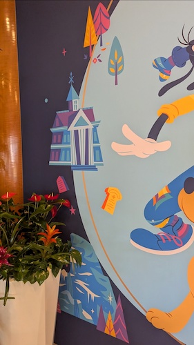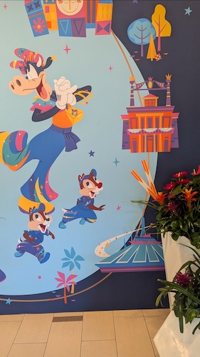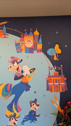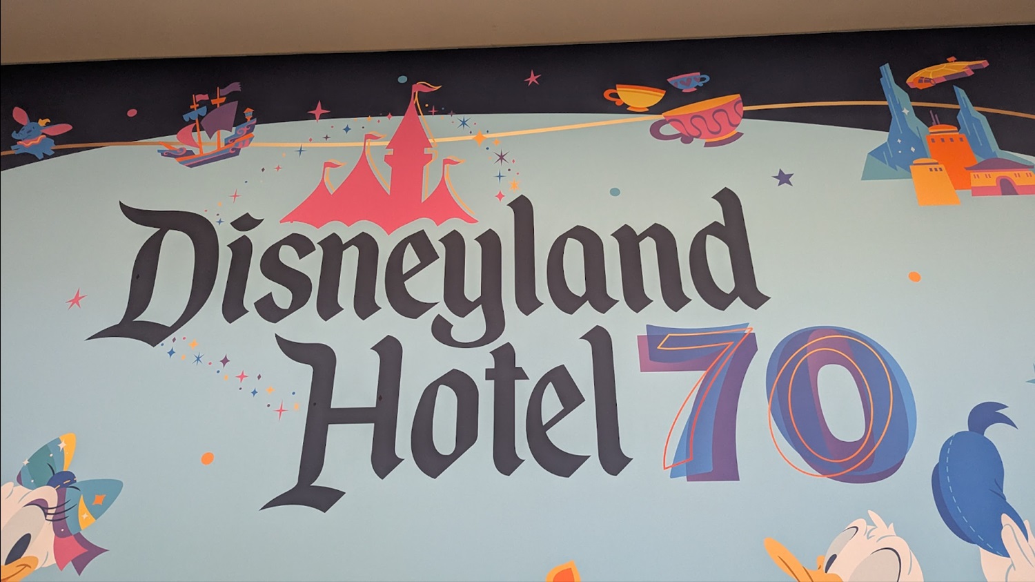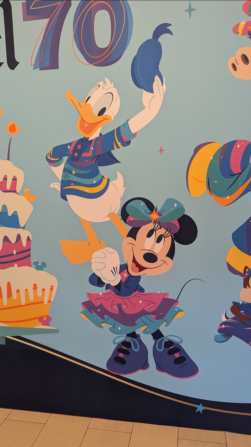 When stepping into the lobby, this mural celebrates the 70th anniversary of the Disneyland Hotel itself – yep, she’s also turning 70 on October 5th. You’ll find Disneyland icons such as Sleeping Beauty Castle, Black Spire Outpost, “It’s a small world" and The Haunted Mansion on the mural, alongside Mickey and friends in their 70th costumes.