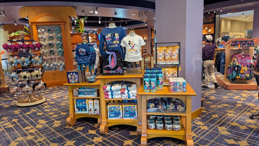 A selection of 70th anniversary merchandise is available at the Disneyland Hotel’s gift shop, the Fantasia Shop.