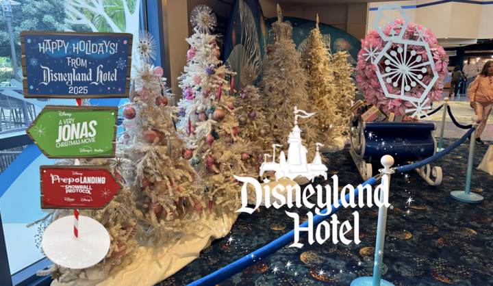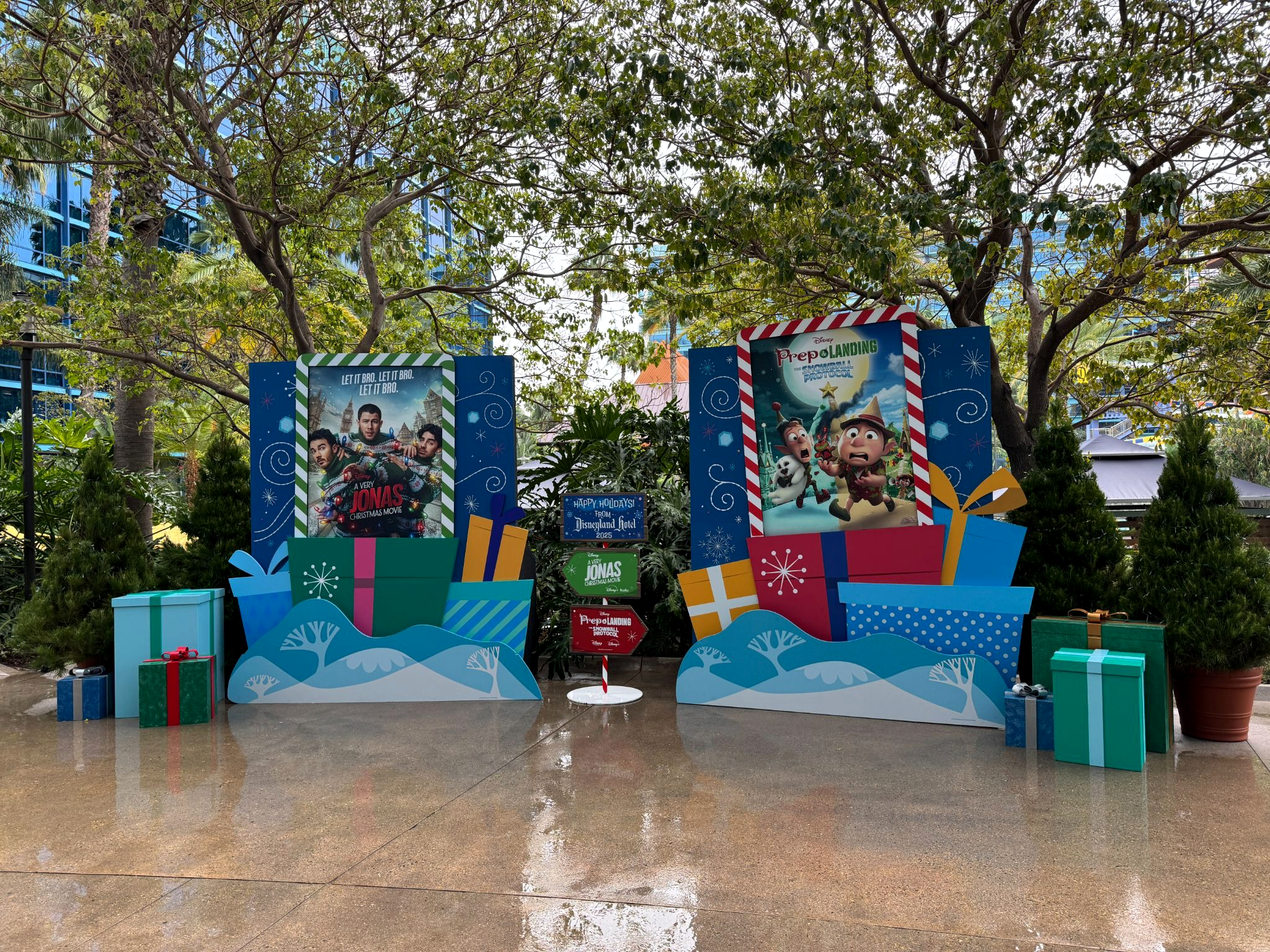 - Over at Disneyland Hotel, a new photo opportunity has appeared, celebrating two of Disney+’s new holiday specials, including the freshly released A Very Jonas Christmas Movie and the upcoming Prep & Landing: The Snowball Protocol.