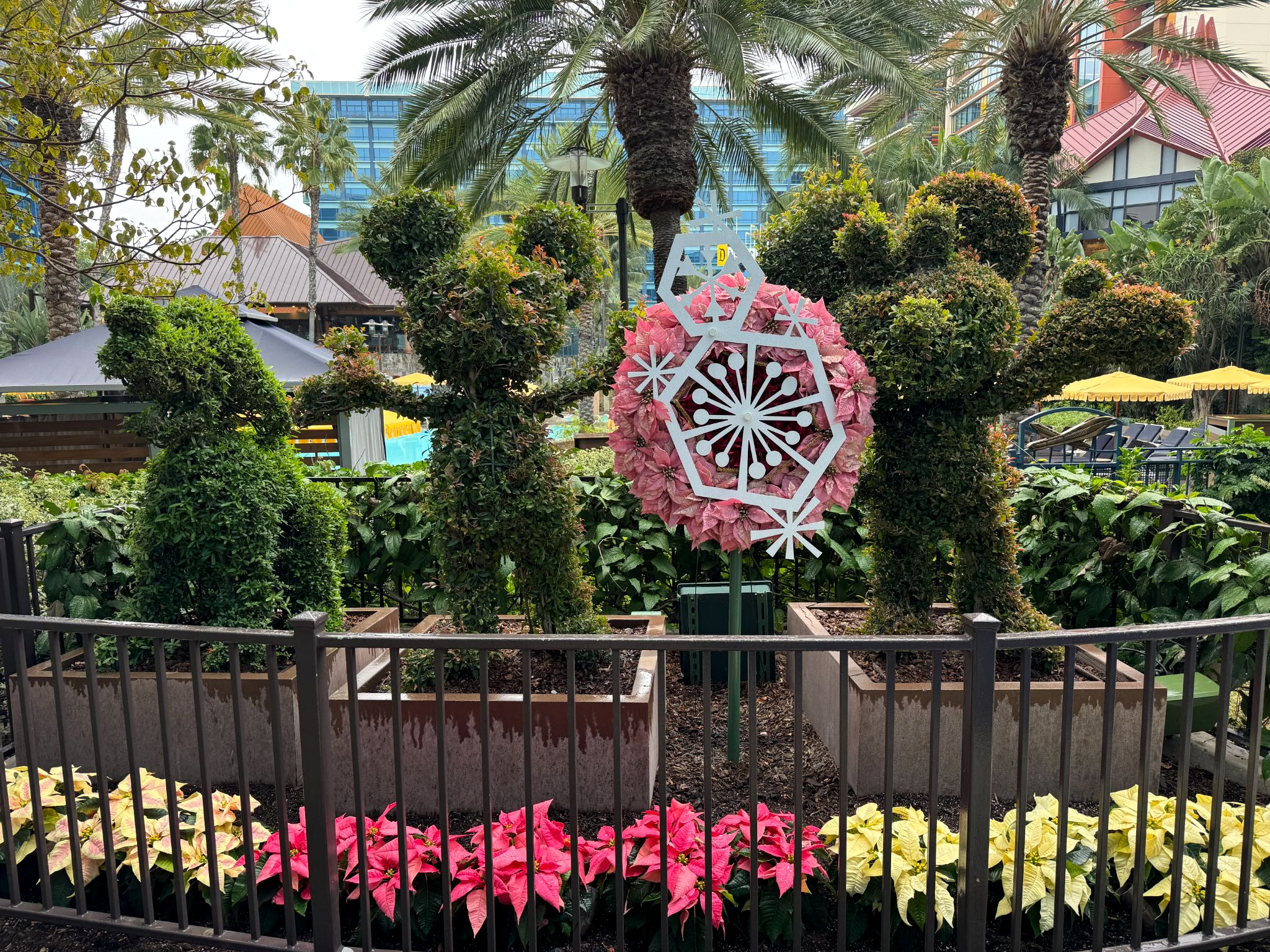 - Just adjacent to the Disney+ photo ops, guests will find a holiday topiary display featuring Mickey, Minnie, and Pluto.