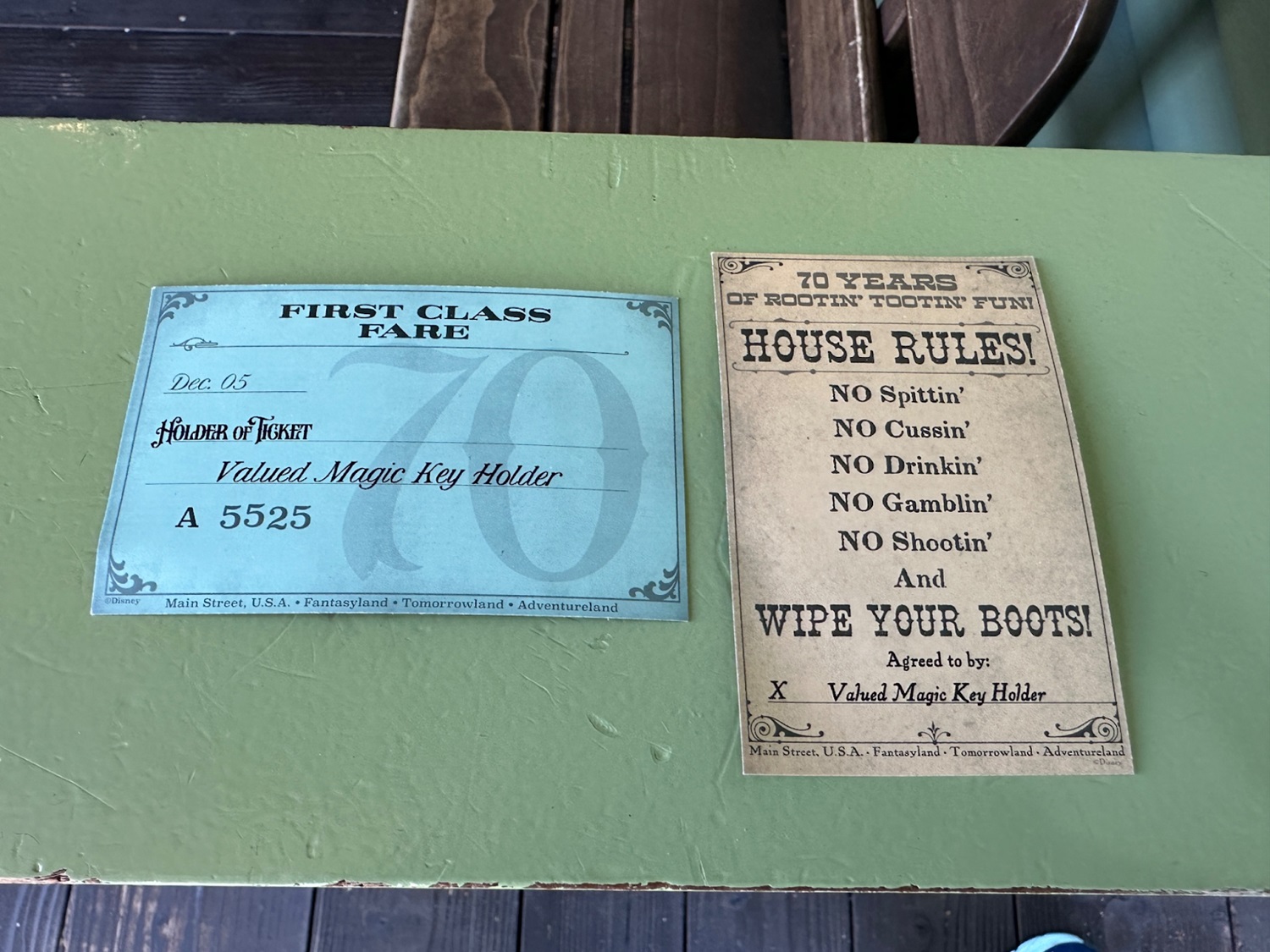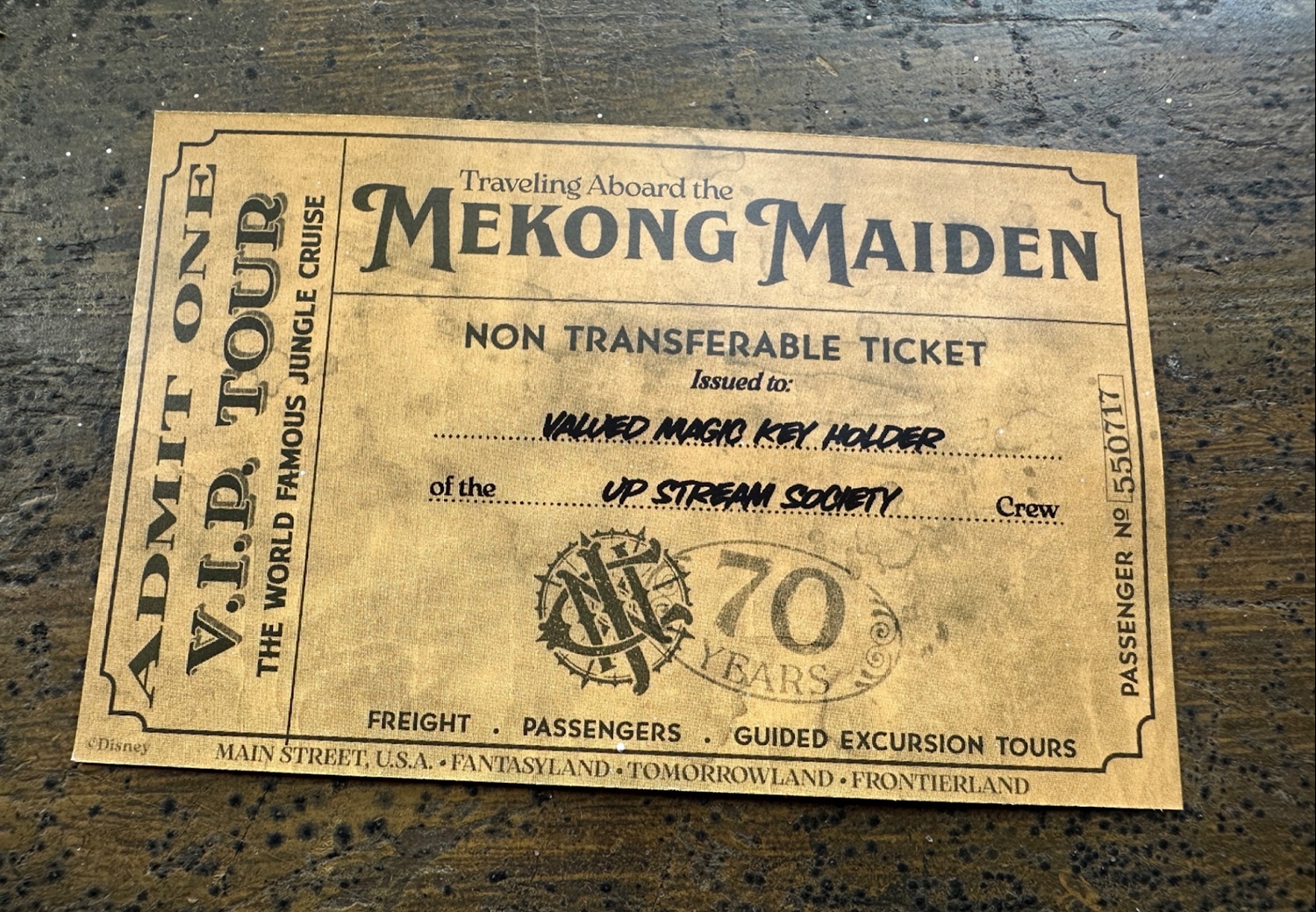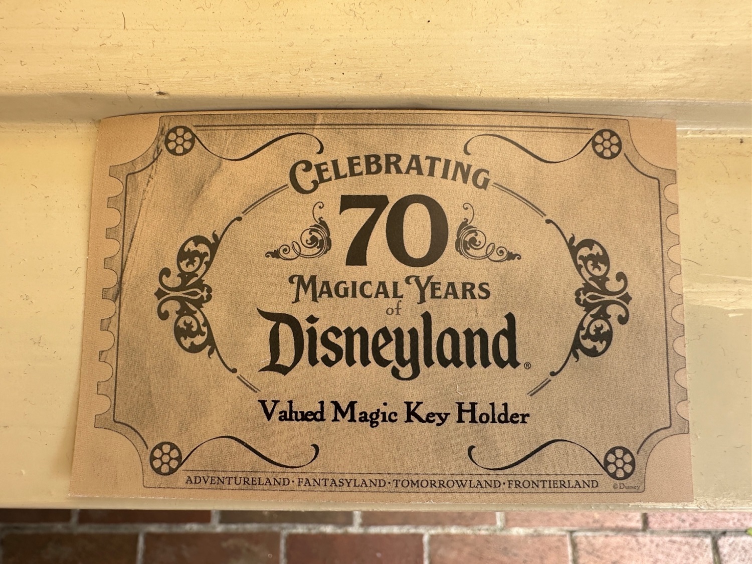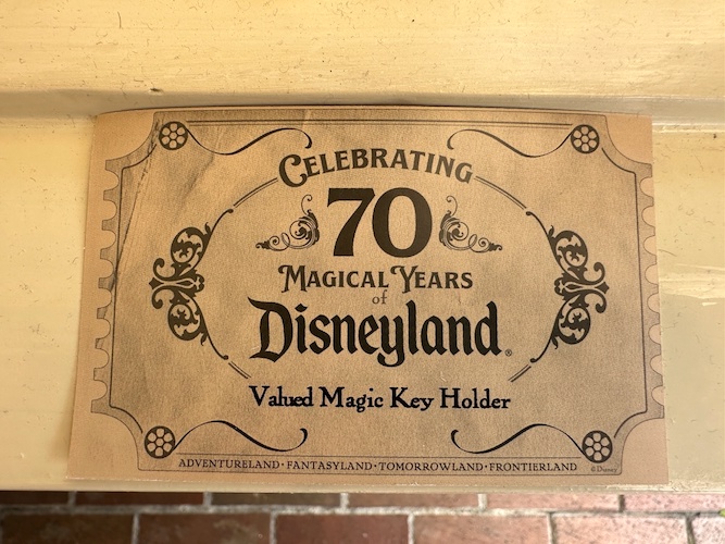 A slightly different message is printed depending on whether the guest is a Magic Key holder or not. As seen above, it says “Valued Magic Key Holder." In the image below, you can see that non-Magic Key holder’s tickets will say “Our Special 70th Anniversary Guest."