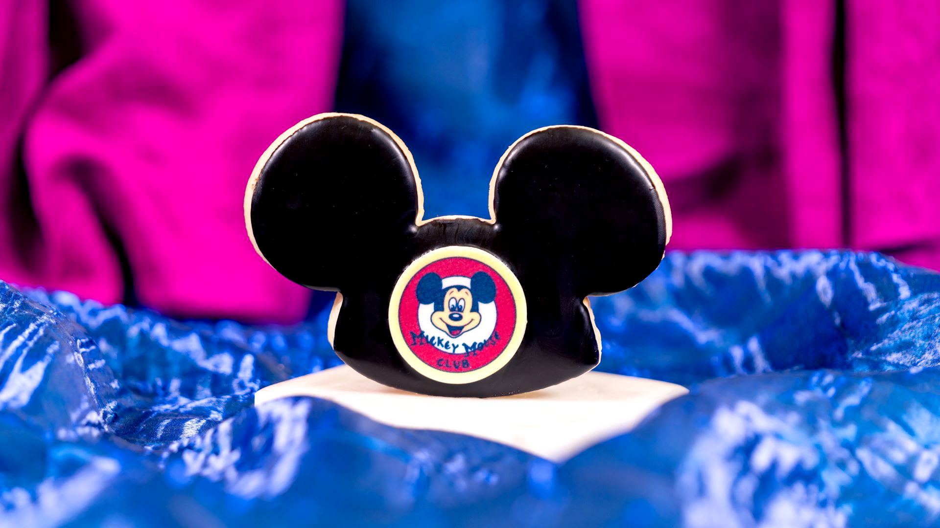 - Mickey Hat Cookie: Sweet dough cookie dipped in black chocolate with chocolate decoration