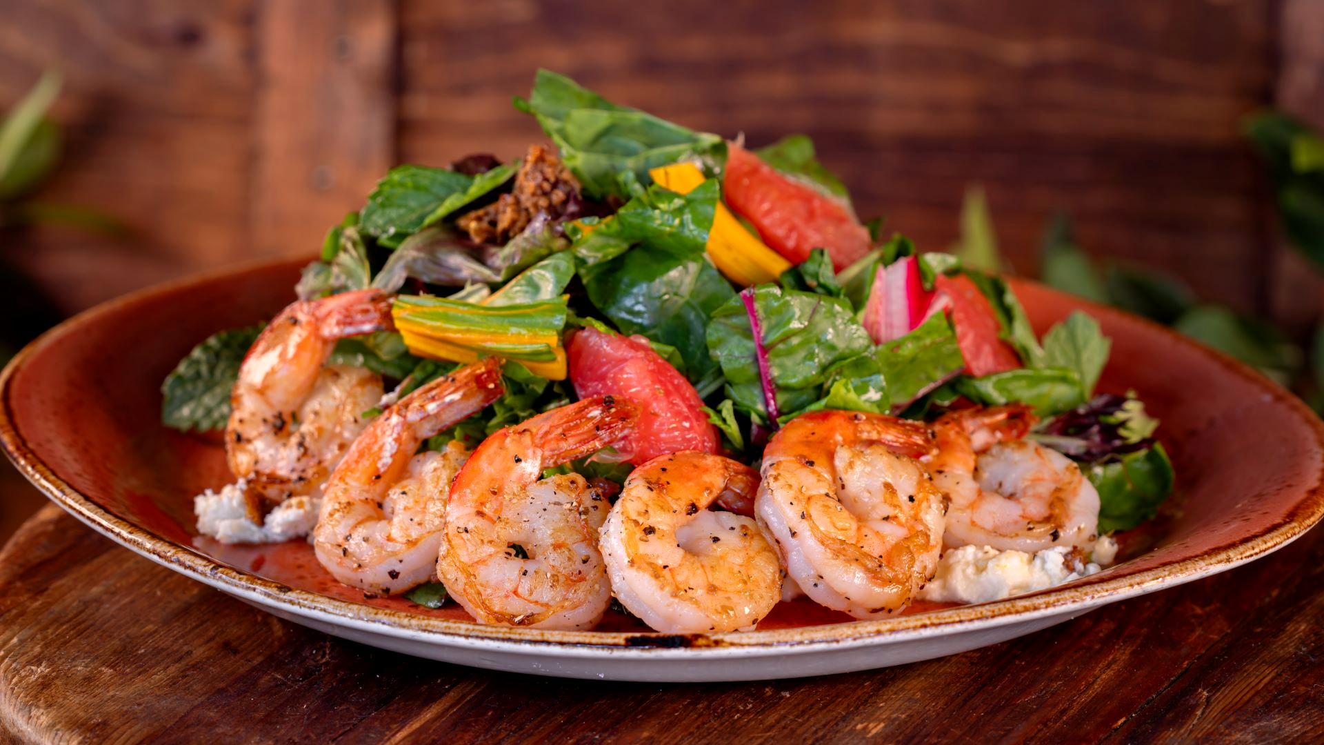 - Grapefruit Salad: Spring mix tossed in grapefruit vinaigrette with citrus segments, mint, shaved fennel, candied pistachios, and orange-vanilla mascarpone (Also available with grilled shrimp) (New)