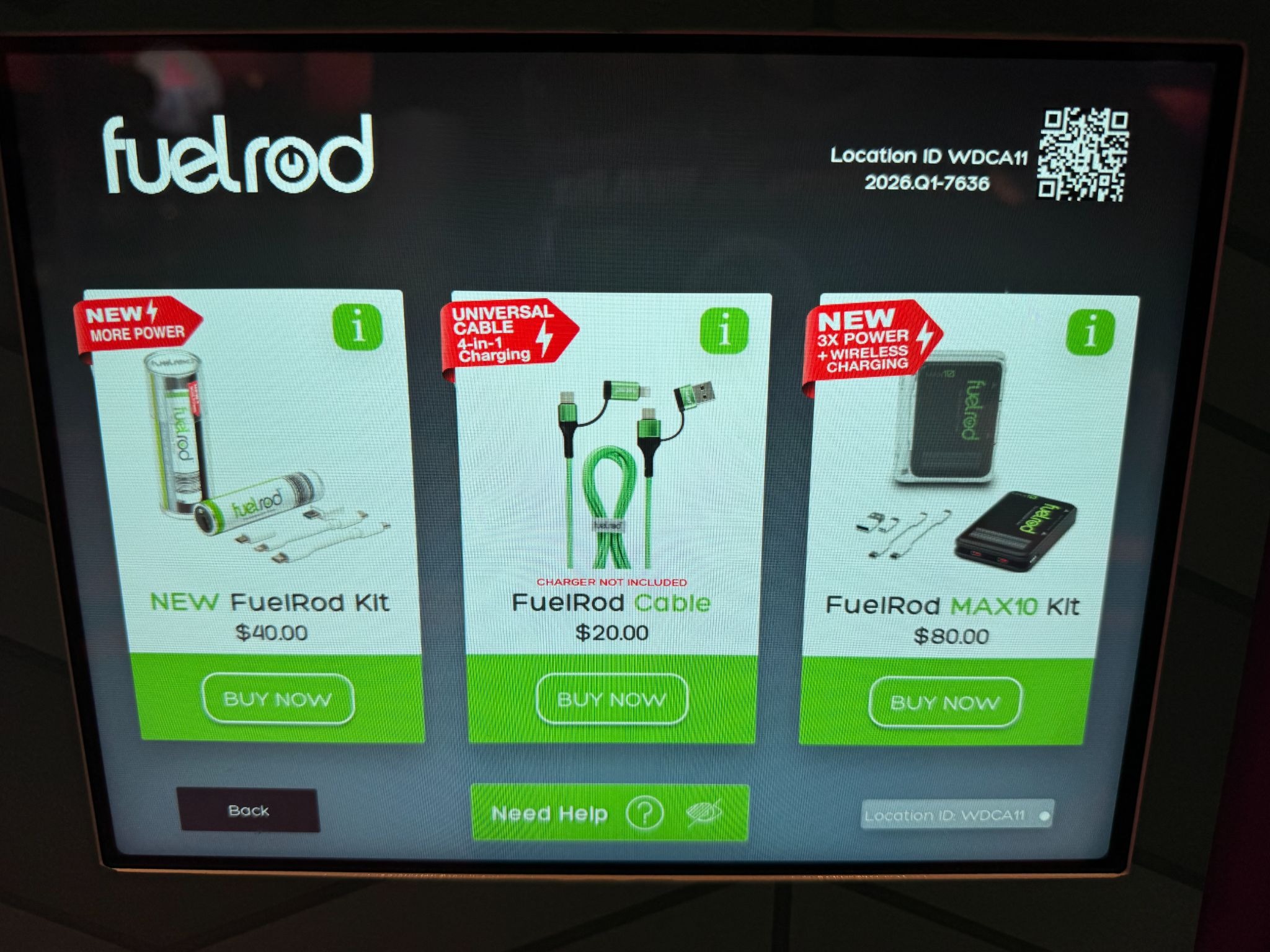 - It also includes the same cables and adapters as the smaller kit, and guests can swap their MAX10 for free at compatible FuelRod machines. Both kits allow on-the-go charging while keeping your devices powered throughout the parks.