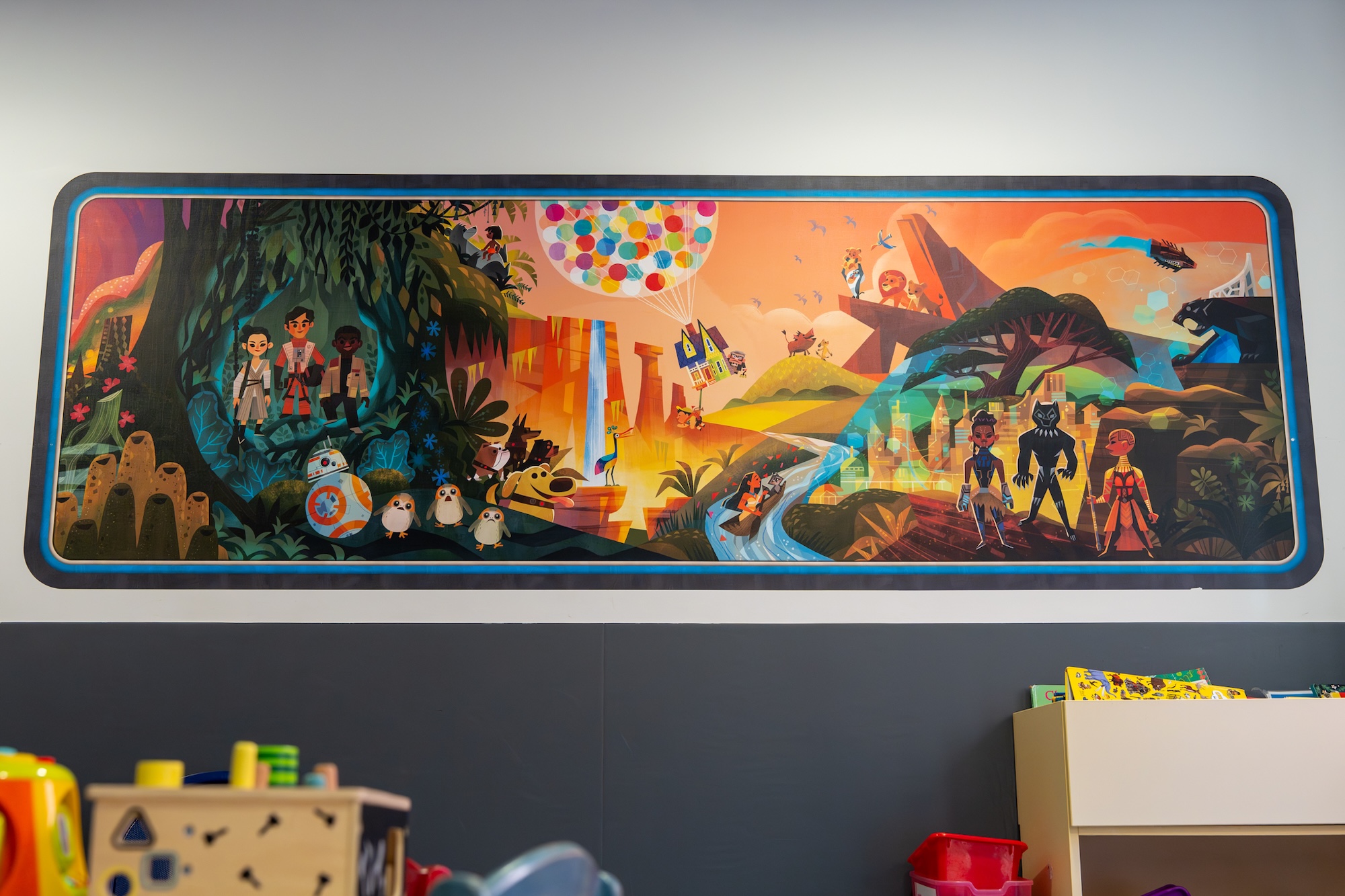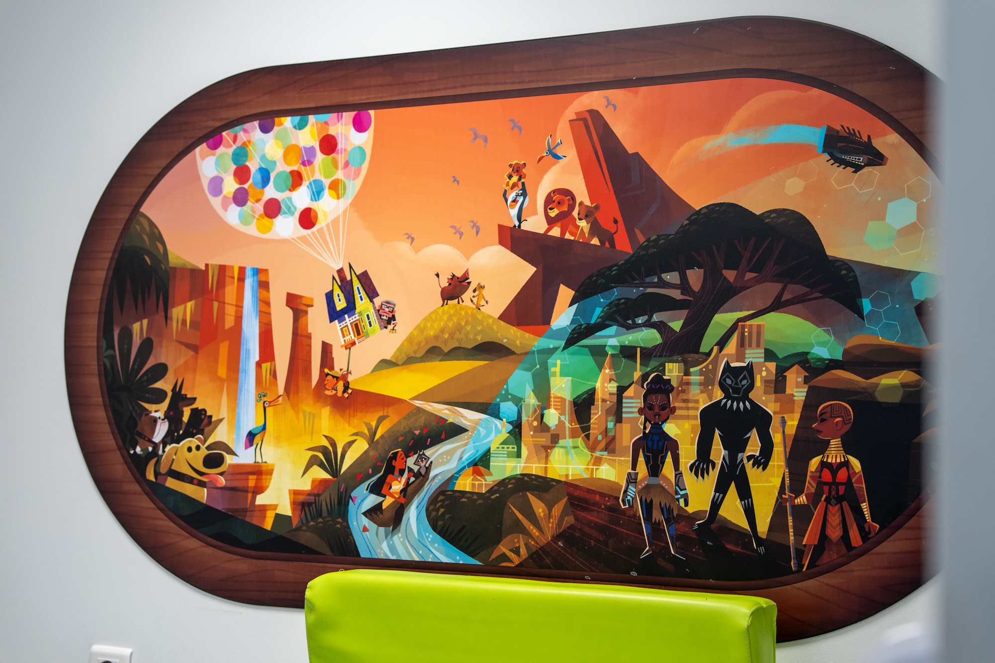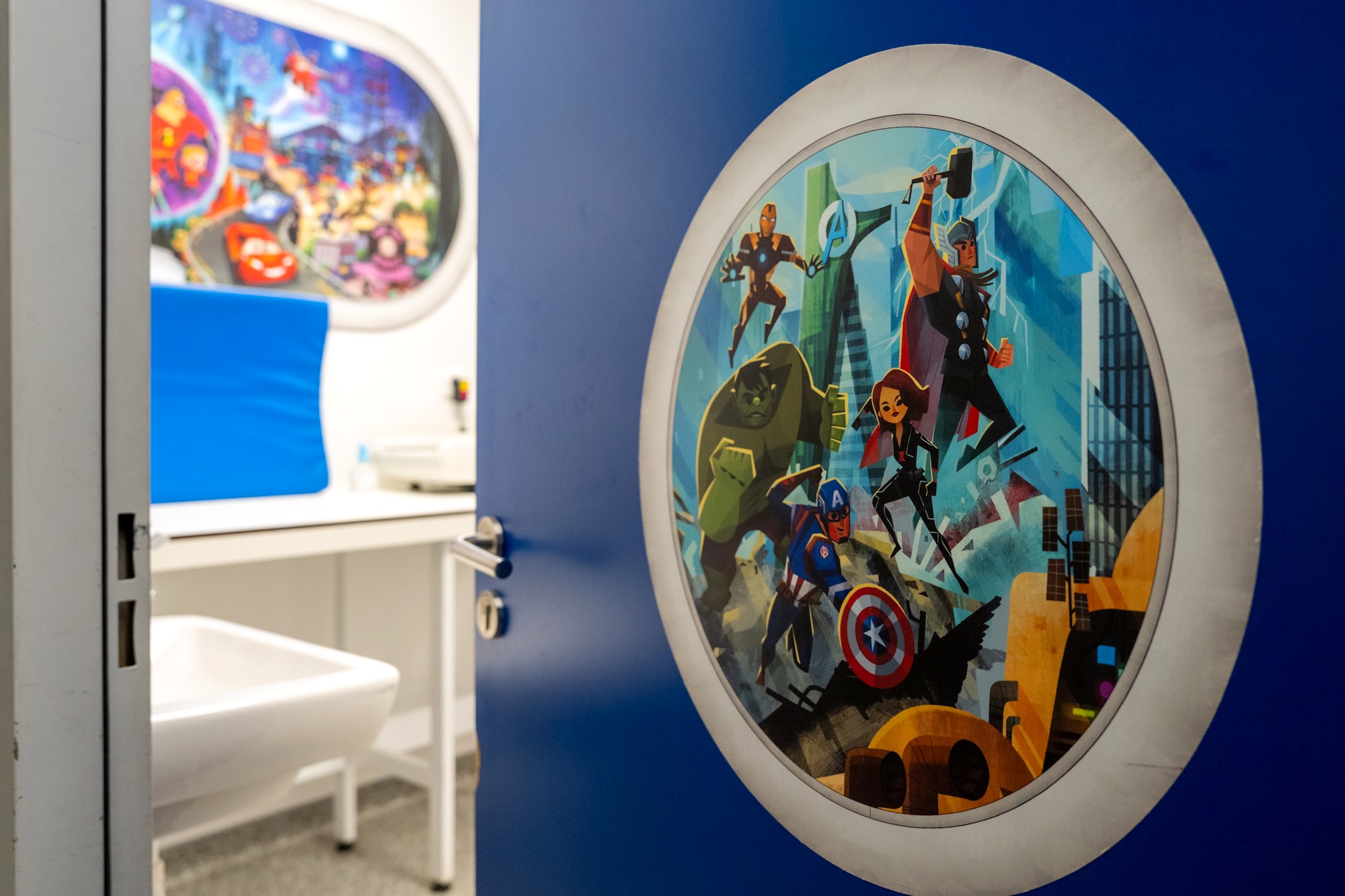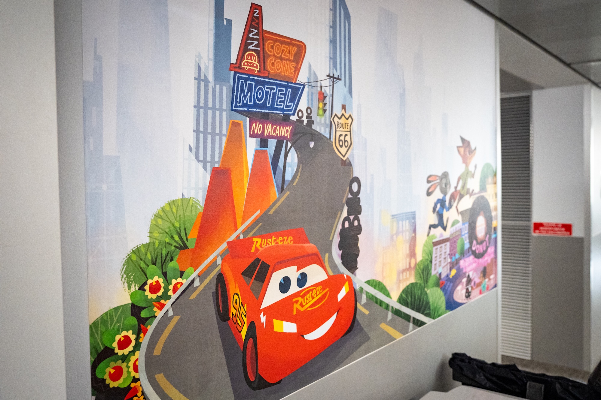 - The decor features a series of murals depicting Disney characters and stories, adapted to the hospital’s spaces, including corridor walls, windows and the medical examination rooms of the pediatric emergency unit.