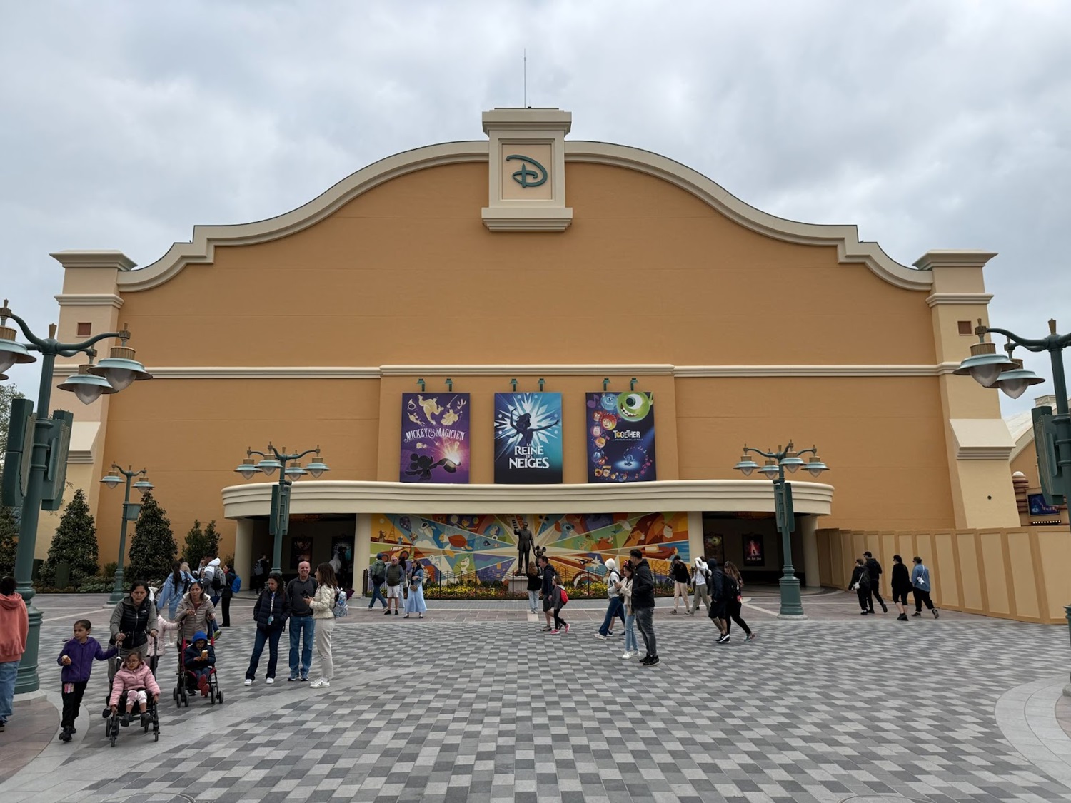 Step into the soundstage to find yourself transported to the glitz and glamour of the golden age of Hollywood. Recreations of iconic Hollywood buildings house shops on the left-hand side, while a beautiful outdoor garden area on the right becomes a quick-service dining area. And as a weinie, drawing you out of the soundstage and into the park, is a movie theater. After all, Walt Disney Studios (and Disney Adventure World) invite Guests to step inside their favorite films.