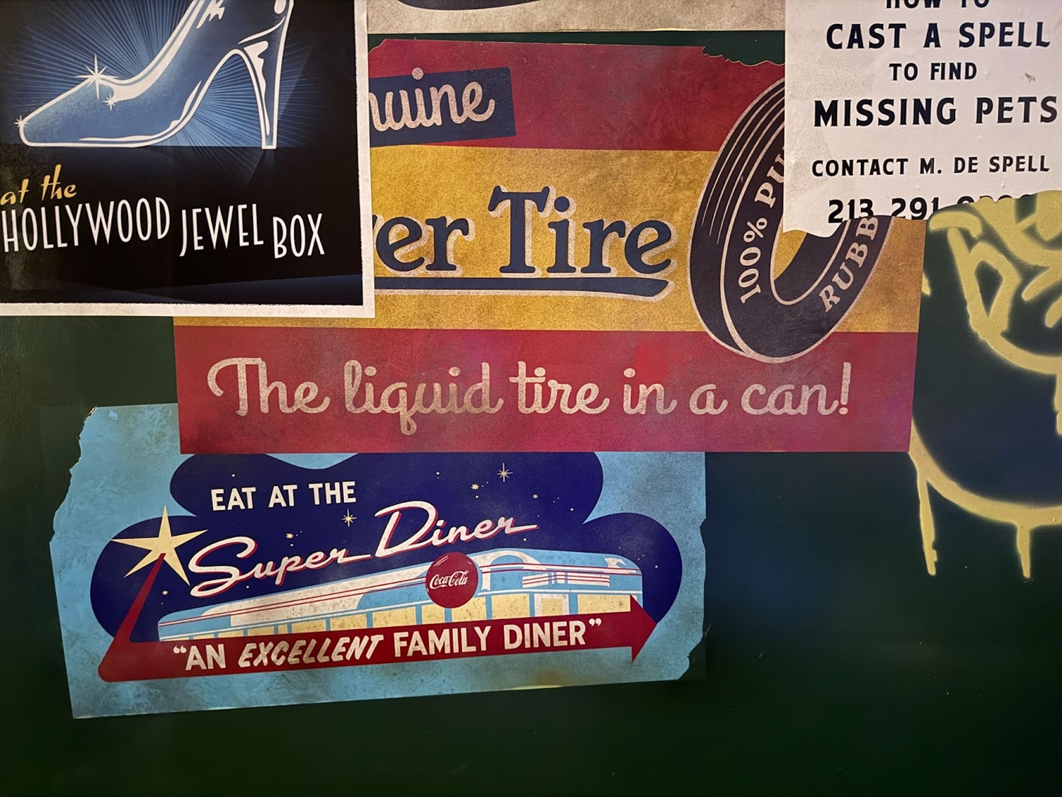 The iconic Hollywood sign is part of the mural, along with another Easter Egg, a billboard for the Broadway version of The Lion King. The Tony-winning production has had two extended runs at L.A.’s Pantages Theater (2000-2003, 2020-2023), and Disney spent $10 million restoring the Pantages for the show’s first Hollywood run.