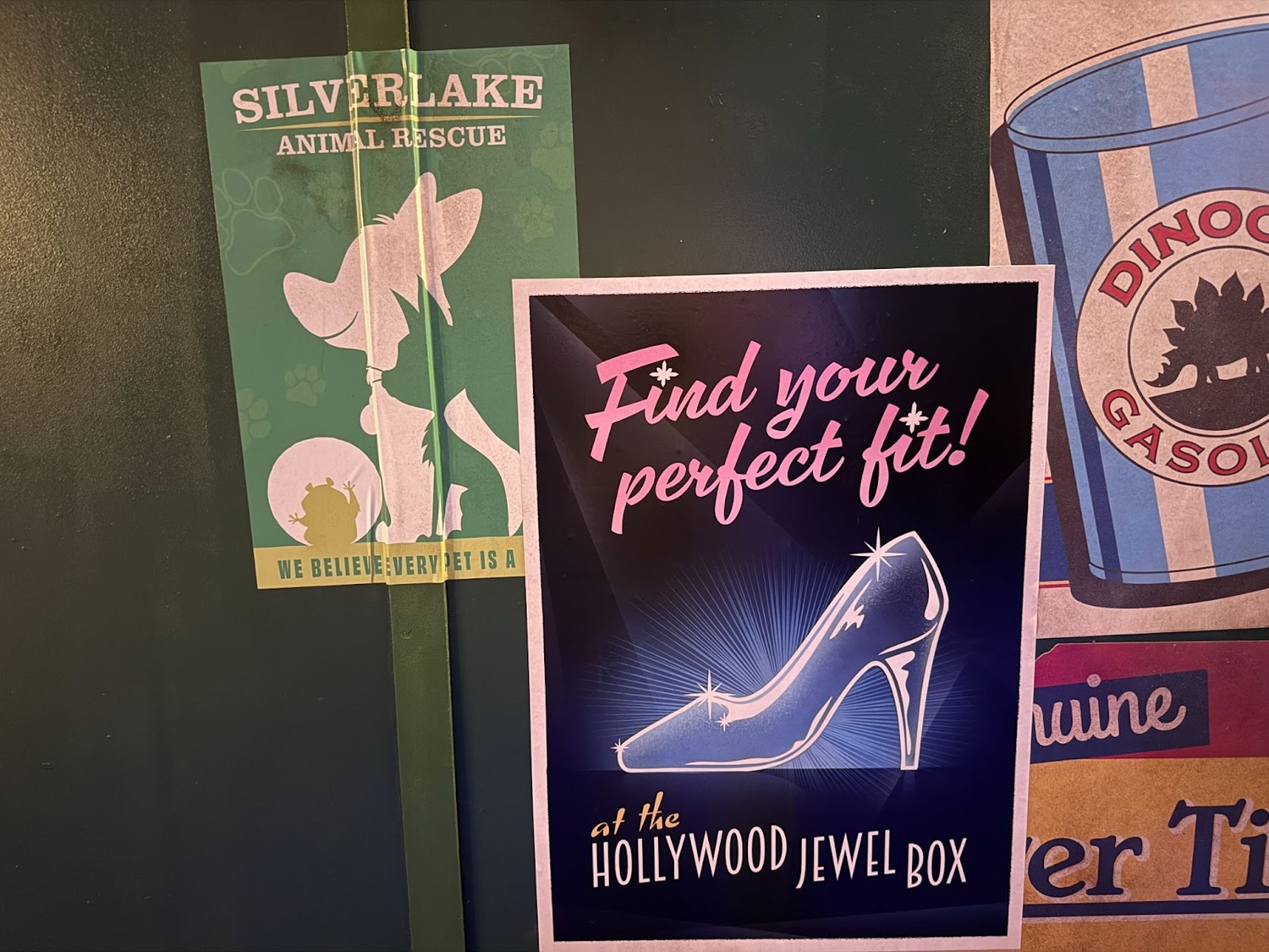 World Premiere is a cornucopia of Easter Eggs for Disney movie buffs. The entrance facade looks like Kem Weber’s iconic original buildings found at Disney’s Burbank studio, complete with window awnings.