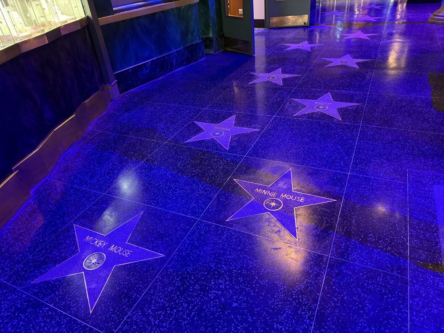 Look down for World Premiere’s own version of the Hollywood Walk of Fame, featuring characters from films you can (or will be able to) engage with in Disney Adventure World.