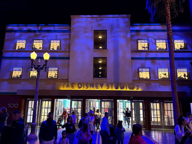 One more hidden detail before we move on. The art deco design around the Disney Theater marquee includes a hidden Sorcerer Mickey hat!