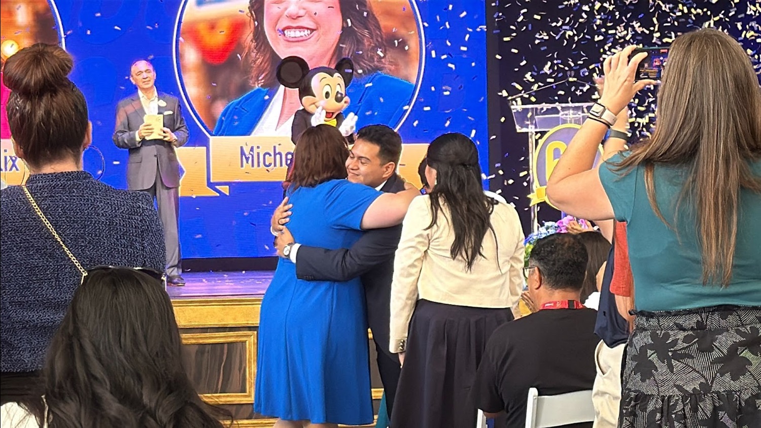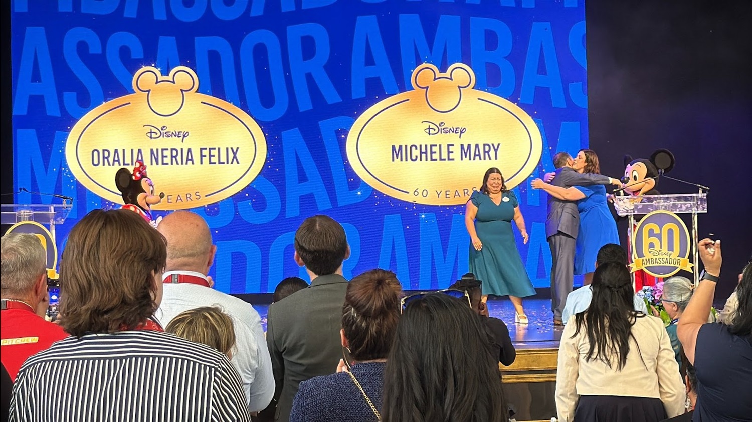 Mickey and Minnie Mouse came on stage to announce with Thomas Mazloum the new Ambassadors: Oralia Neria Felix and Michele Mary.