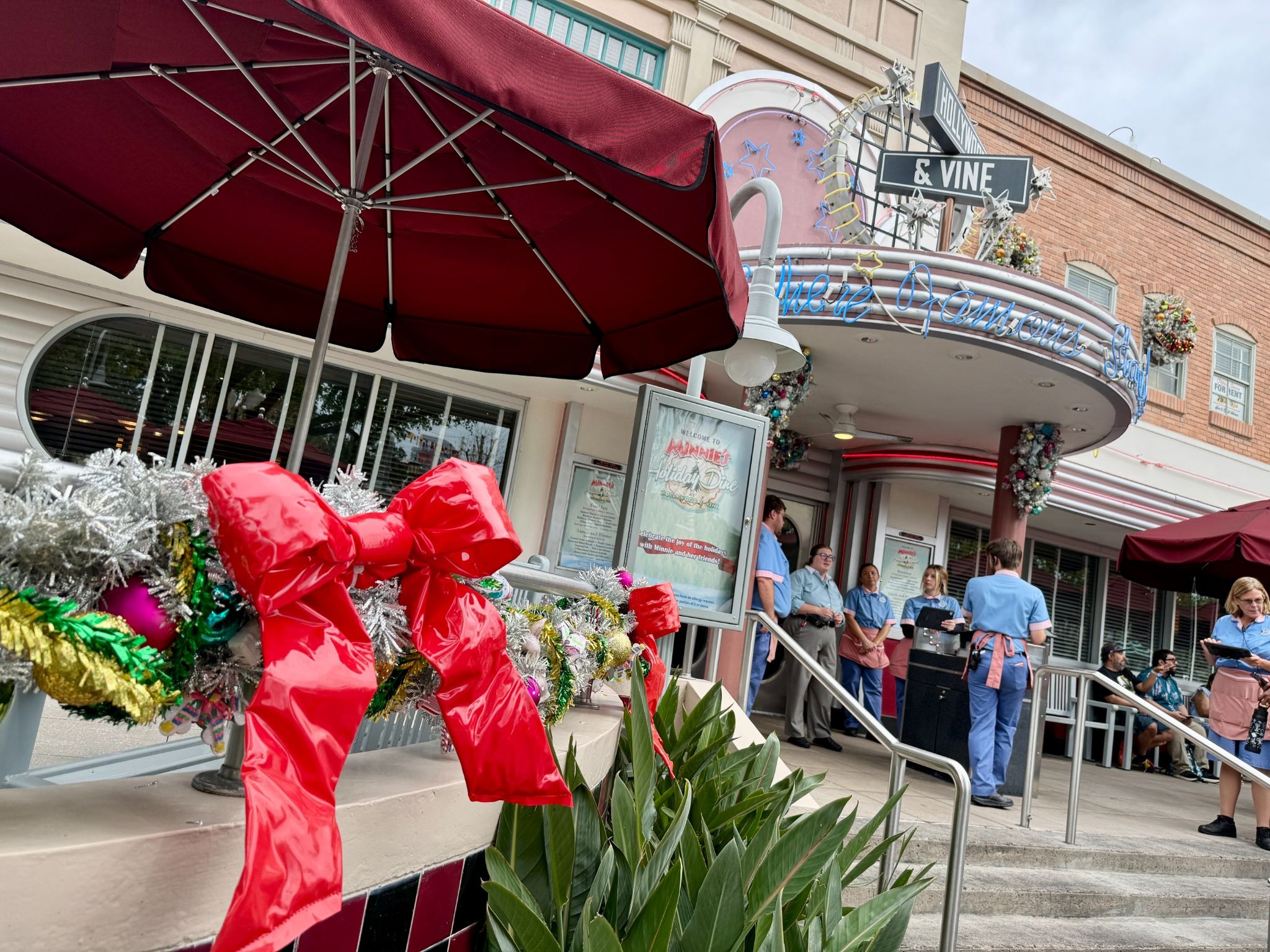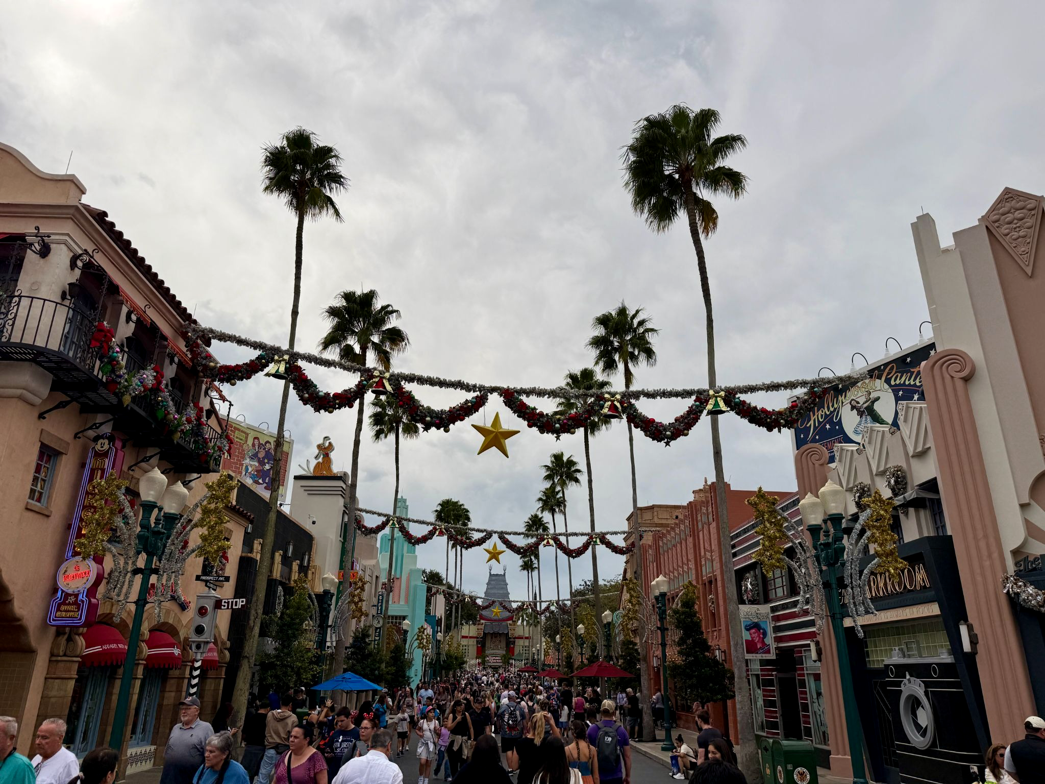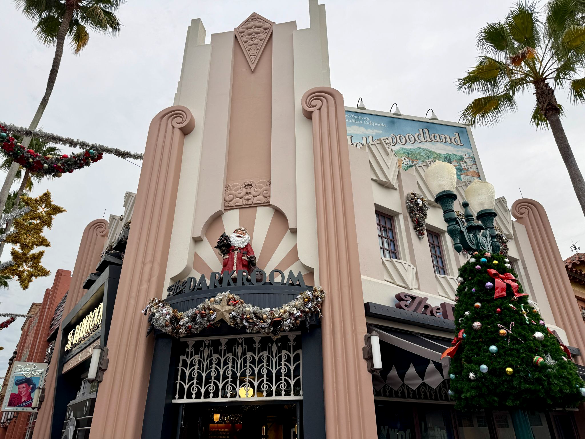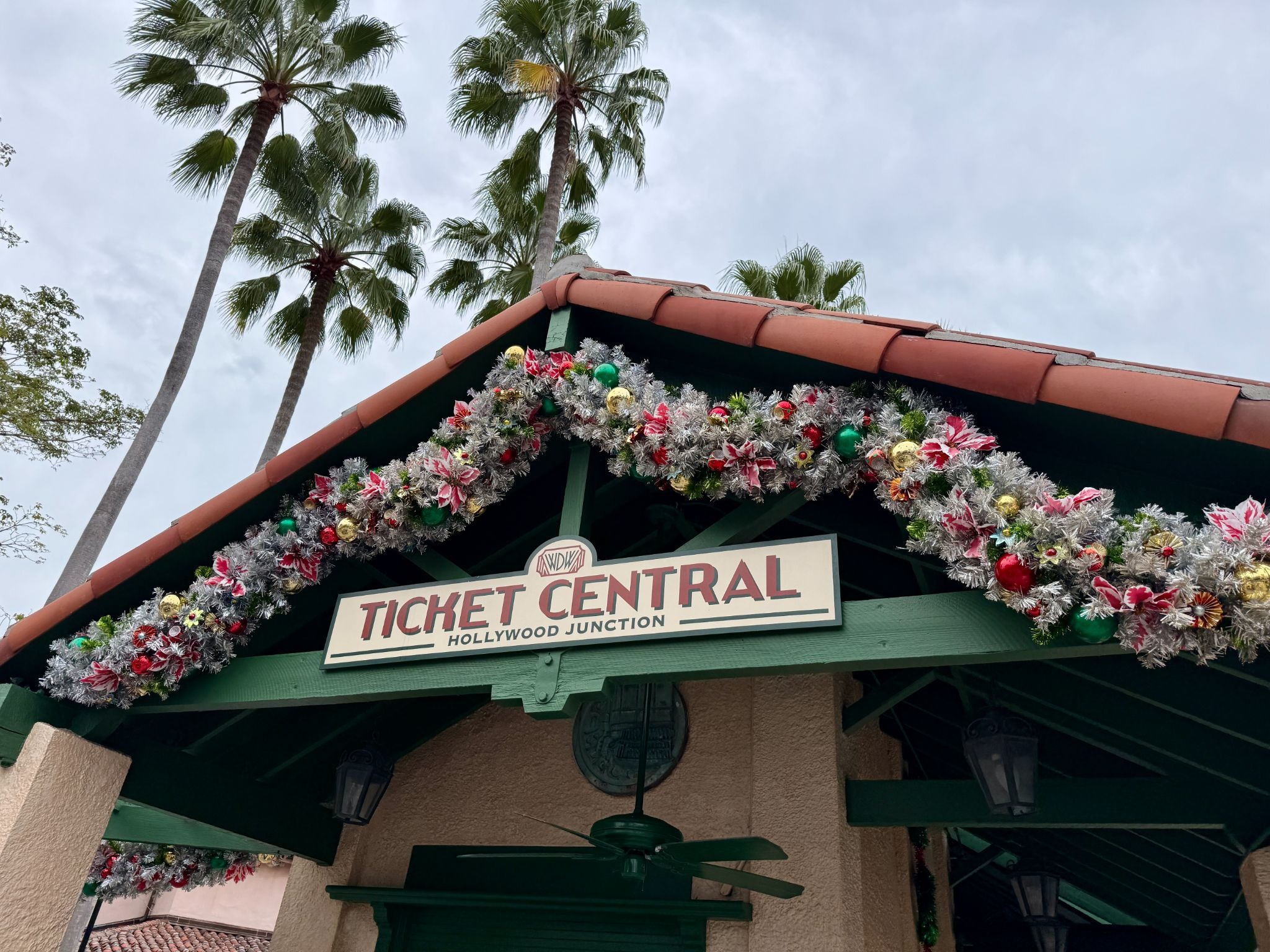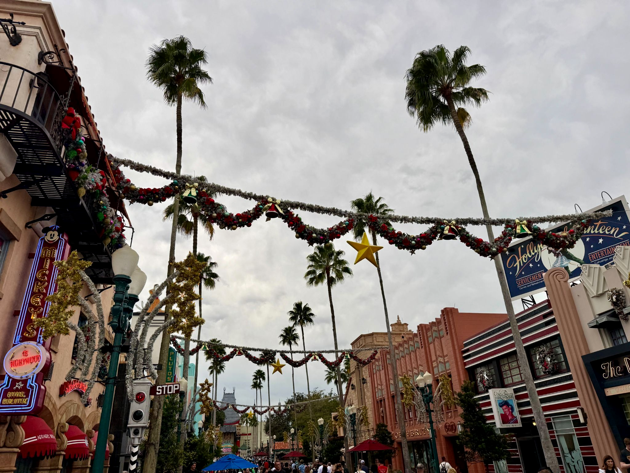 As soon as guests approach Disney's Hollywood Studios, they'll be greeted by vintage Christmas music and equally as vintage decorations, evoking a Christmas of the 1920s and 30s.