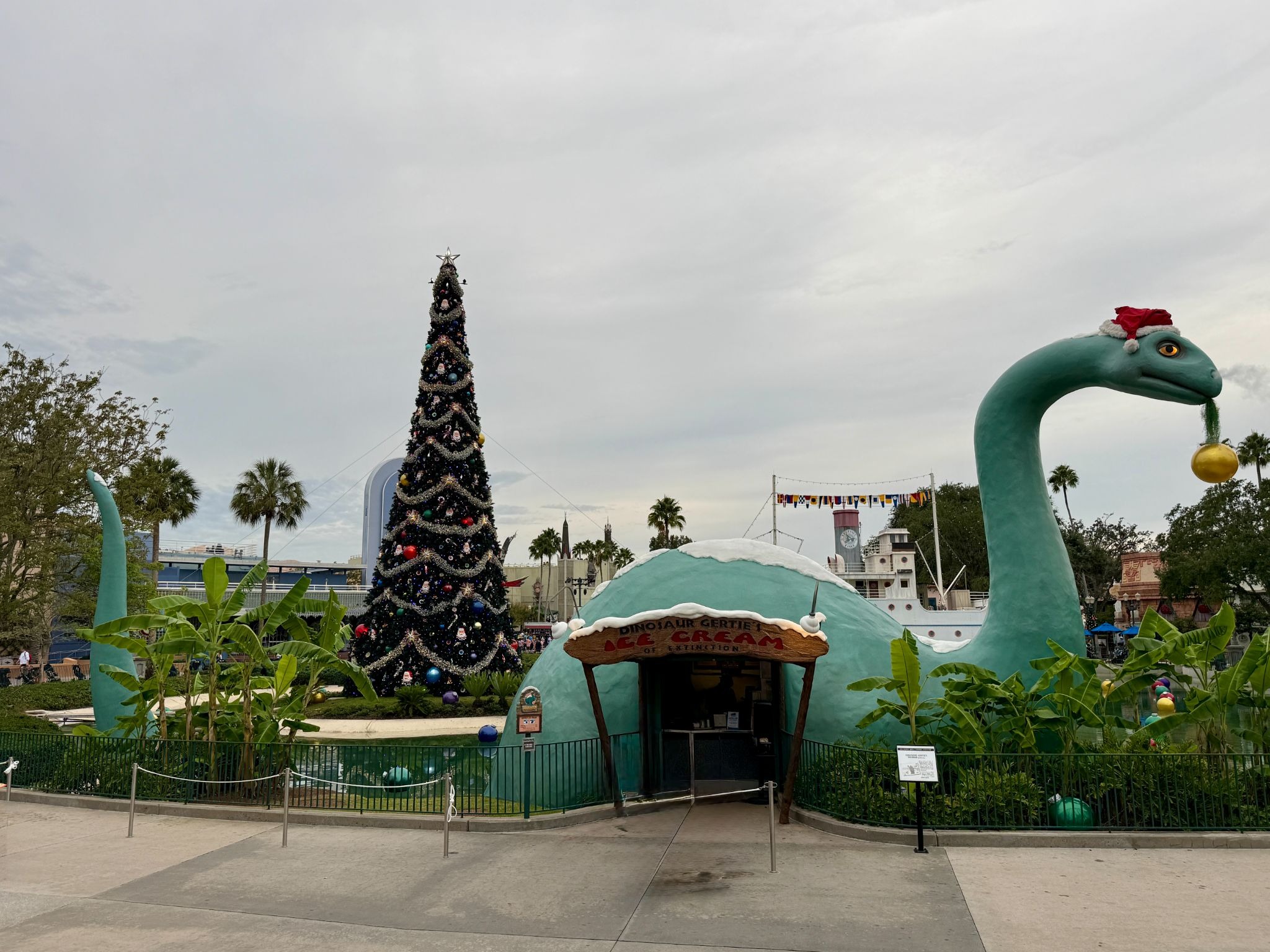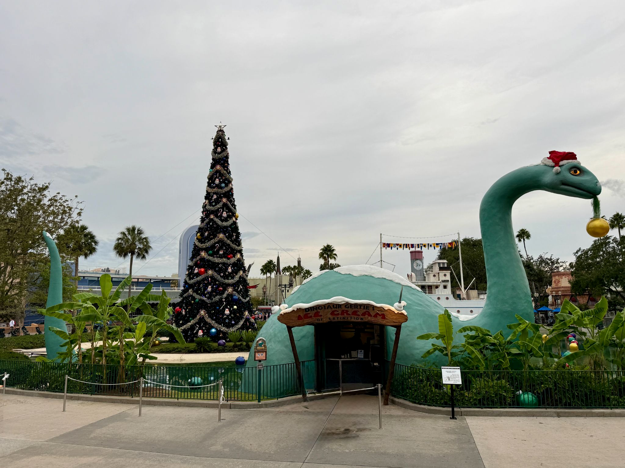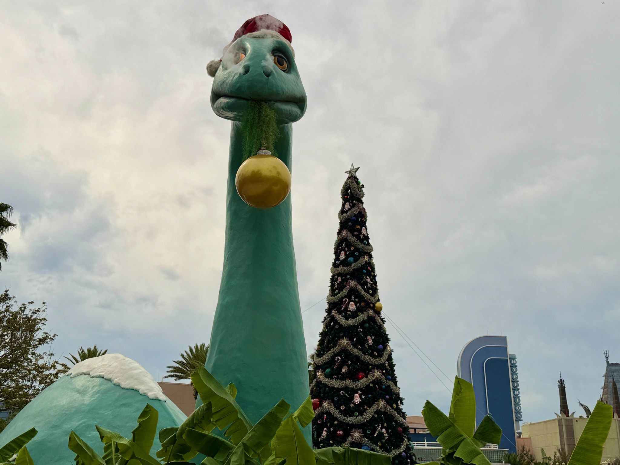 The iconic Dinosaur Gertie has her Santa hat and ornament back – a true sign that the holiday season is among us!
