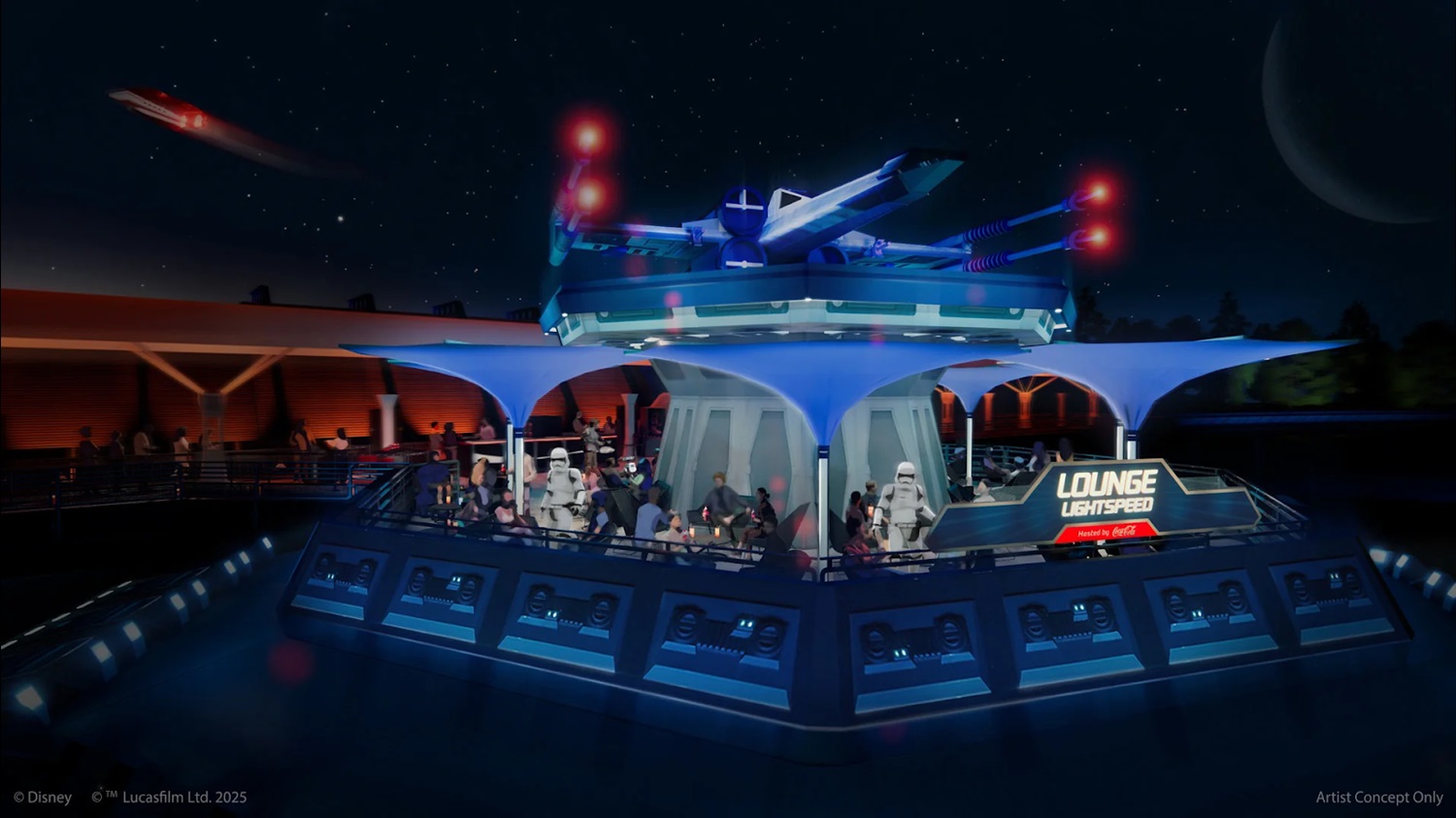 - The story of the lounge will tie into the nearby attraction, Star Tours: the Adventures Continue, as at Lounge Lightspeed, galactic travellers will be able to enjoy refreshing drinks or a Star Wars-themed snack before embarking on a journey to a Galaxy far, far away.