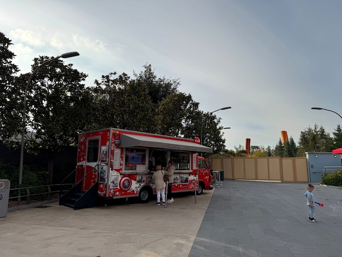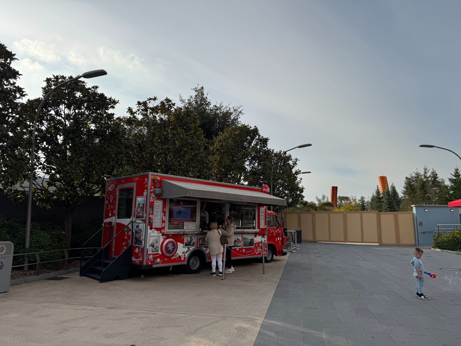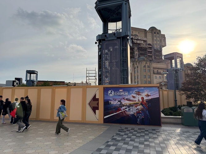 Continuing through Marvel Avengers Campus, the pathway behind Spider-Man W.E.B. Adventure and the Tower of Terror comes to an abrupt halt with another set of construction walls.
