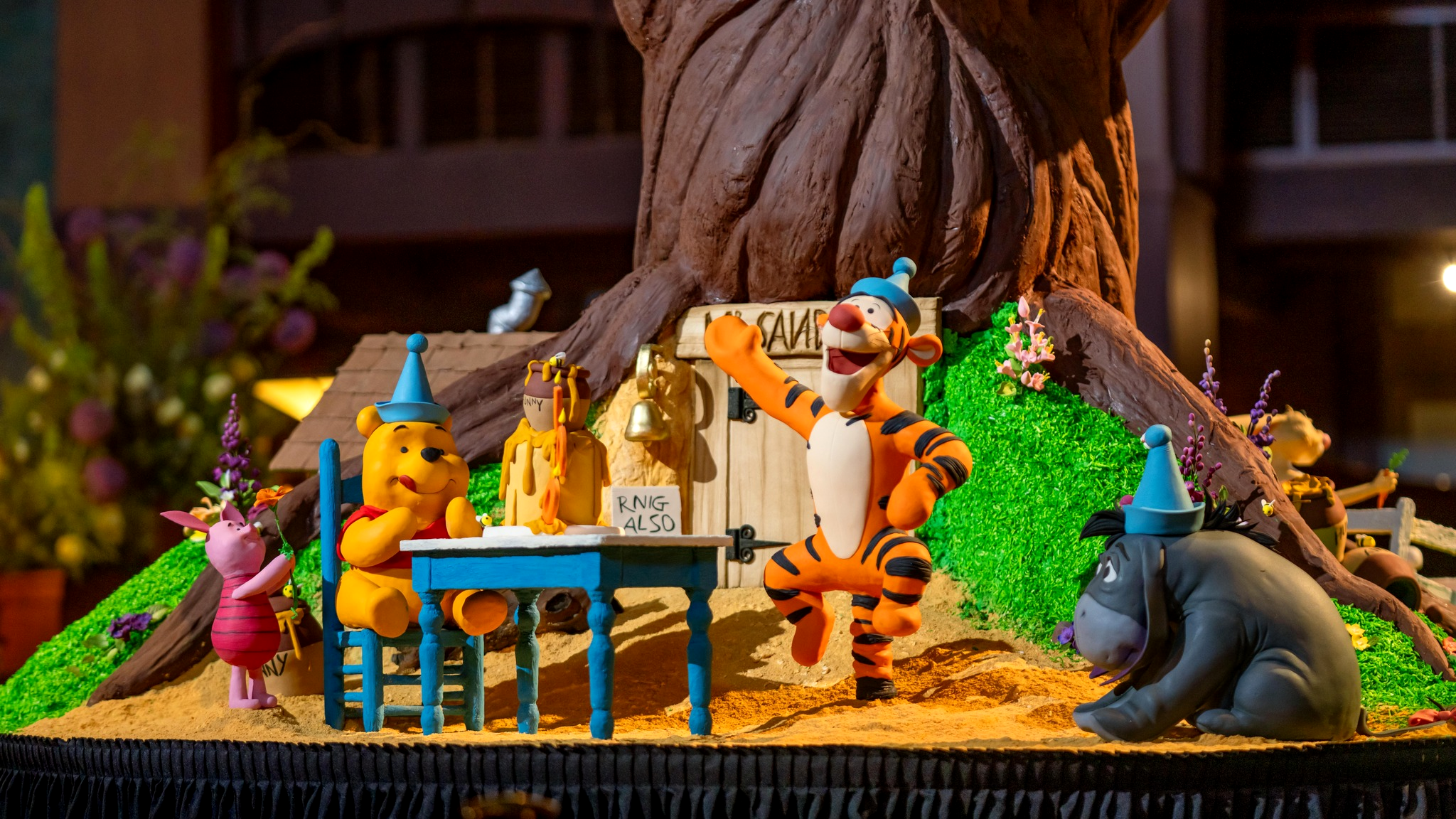 - Available for guest viewing throughout the month of April, the display features a large recreation of Winnie’s tree house, along with the crew celebrating their milestone.