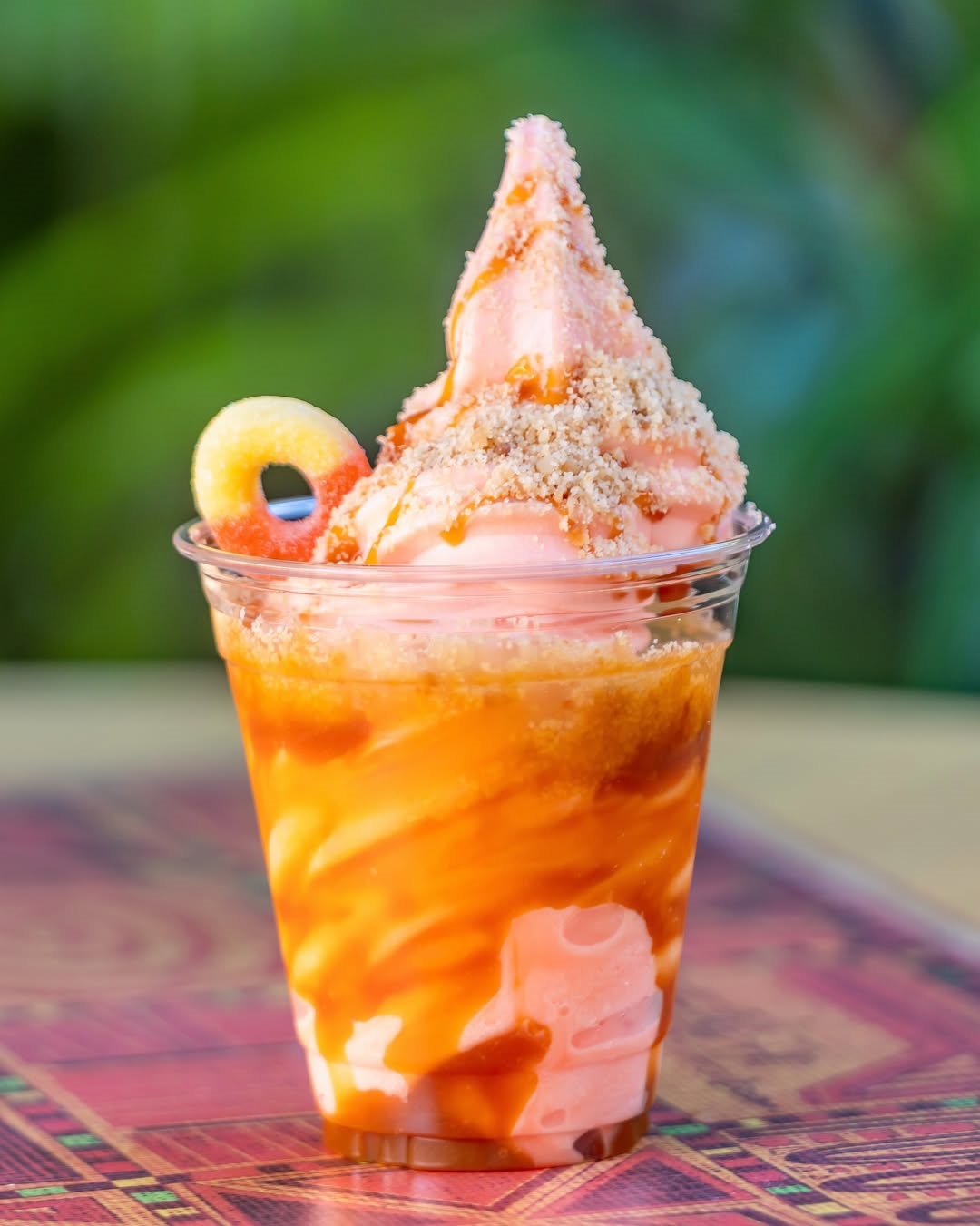 - Soon, as shared by the Disney Eats Instagram, a new Peach Sundae will be available – which adds caramel drizzle, streusel and a peach ring to a swirl of Dole Whip Peach.
