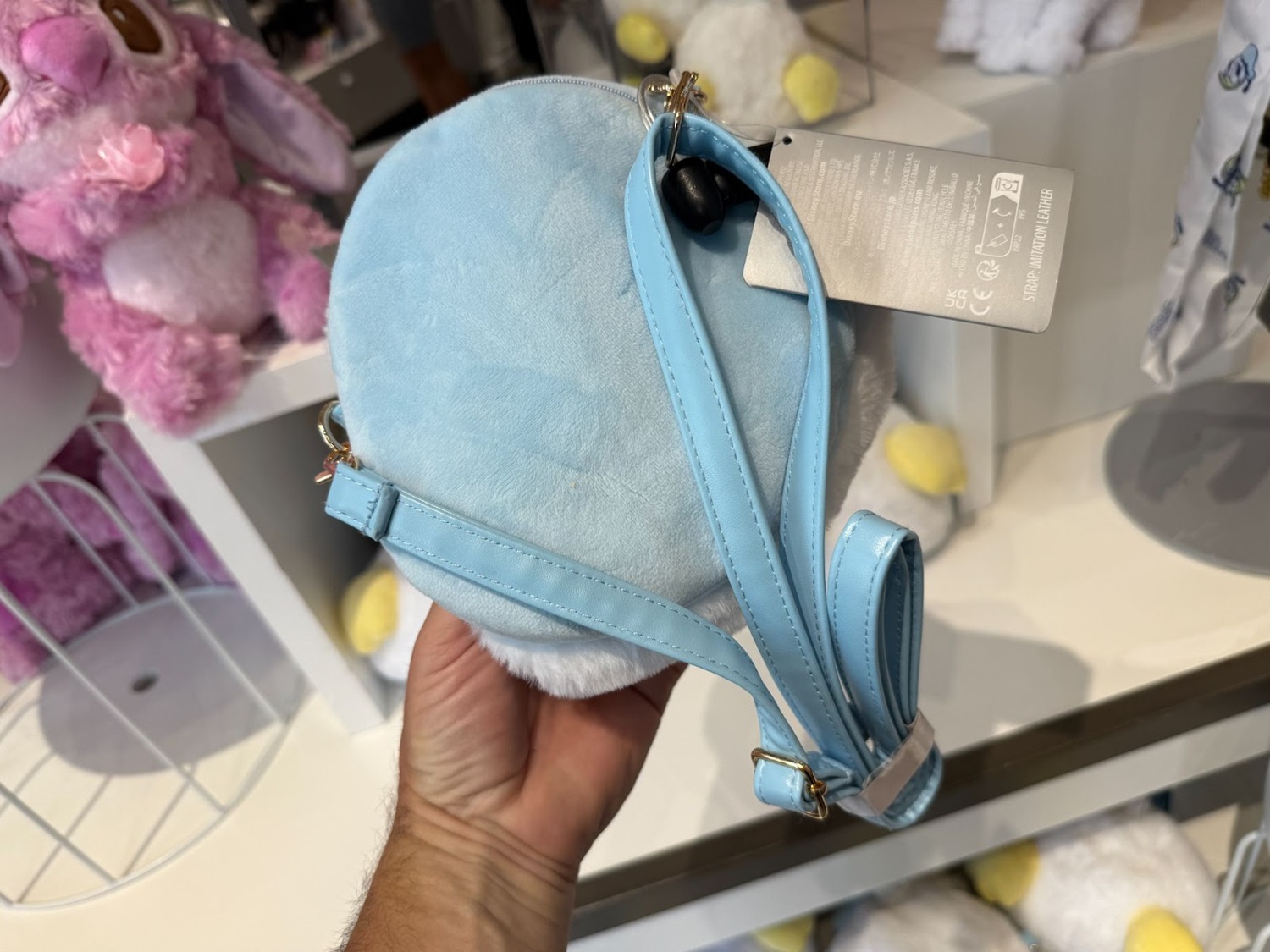 Donald Duck fans who want to show off their love for the character can pick up a new crossbody featuring the same “duck butt" design. Larger than the keychain, this plush serves as more of a purse rather than a shopping accessory. This will be a perfect accessory for the Disney Parks, especially if you have the Donald Duck butt headband. Featuring a light blue pleather strap, the crossbody runs for $29.99.