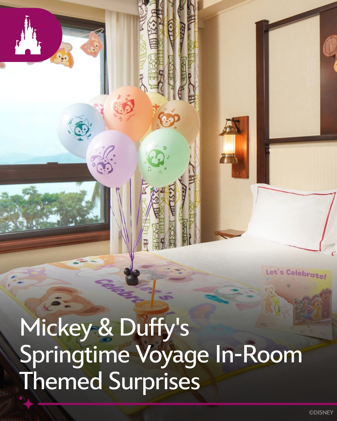 - Over at the hotels of the Hong Kong Disneyland Resort, guests can upgrade their rooms to experience Mickey & Duffy's Springtime Voyage, with some special in-room themed surprises.