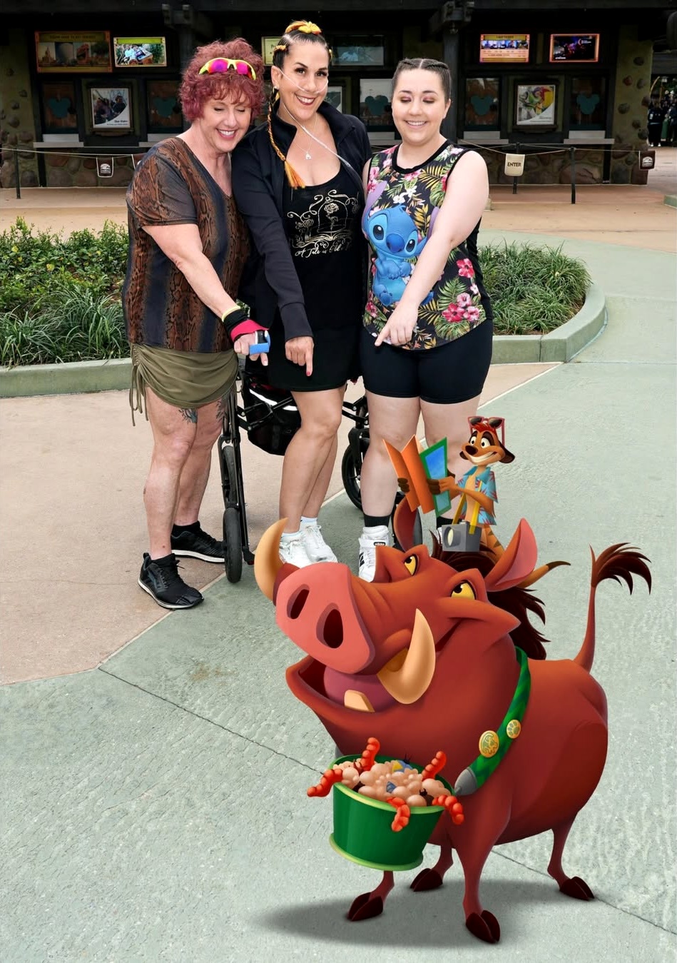 - Timon & Pumbaa Vacation – at the entrance of the park before the ticket windows, near Creature Comforts by the "Tree of Life Garden" sign, in the Marketplace area in Africa, by The Lion King statue near Pizzafari, and on the bridge leading from Discovery Island into Africa