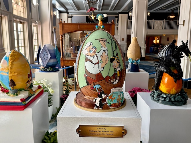 - The Grand Floridian’s Easter Egg display features an array of chocolate sculptures created by Disney’s incredibly talented culinary team.