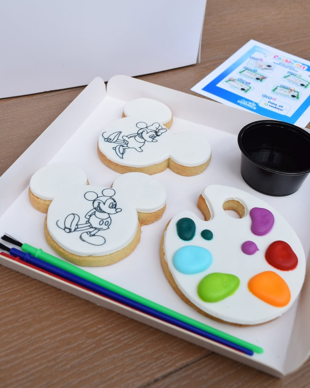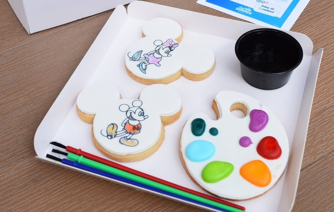 - Using paintbrushes, guests can take the edible paint off an easel-shaped cookie to paint two other cookies, both shaped like Mickey and featuring the iconic outlines of Mickey and Minnie.