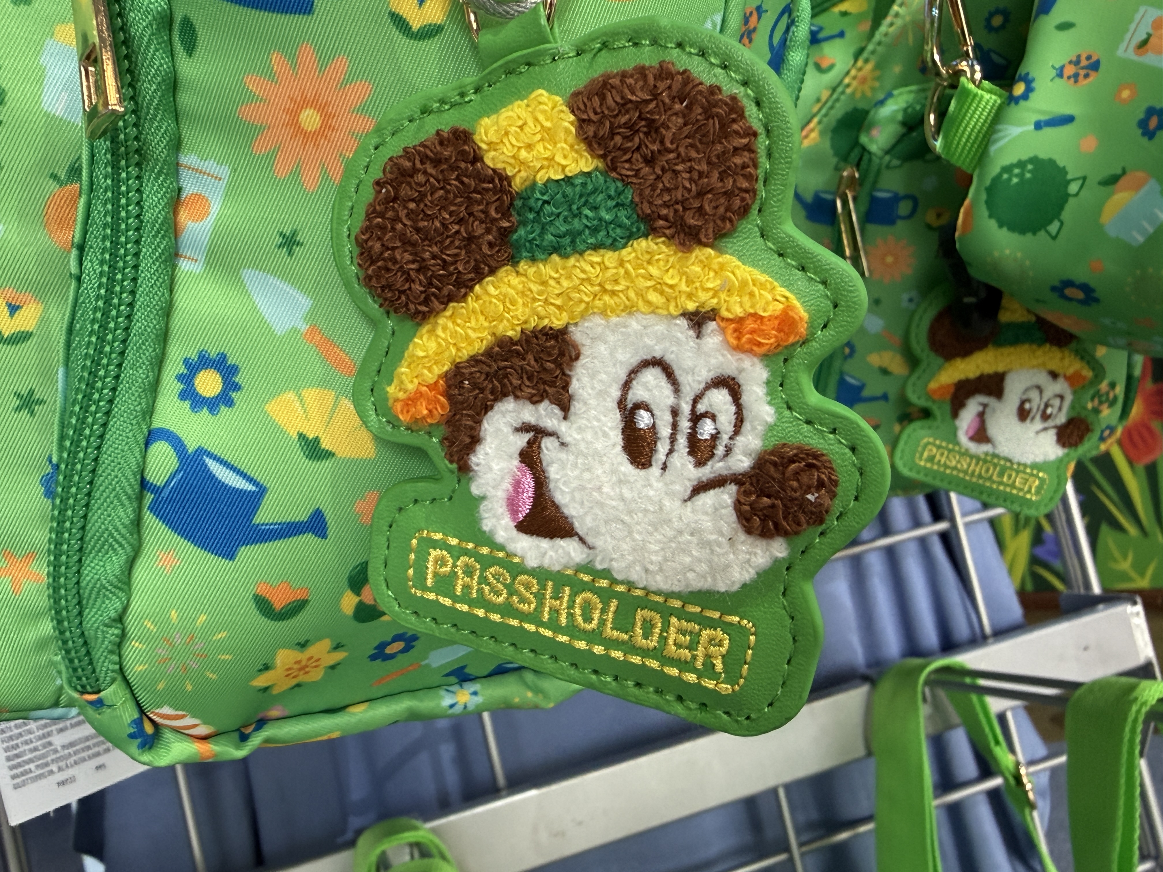 Special Passholder shirts for $36.99 can be picked up, featuring Mickey in his landscaping hat. The passholder motif carries over to a baseball cap for $29.99.