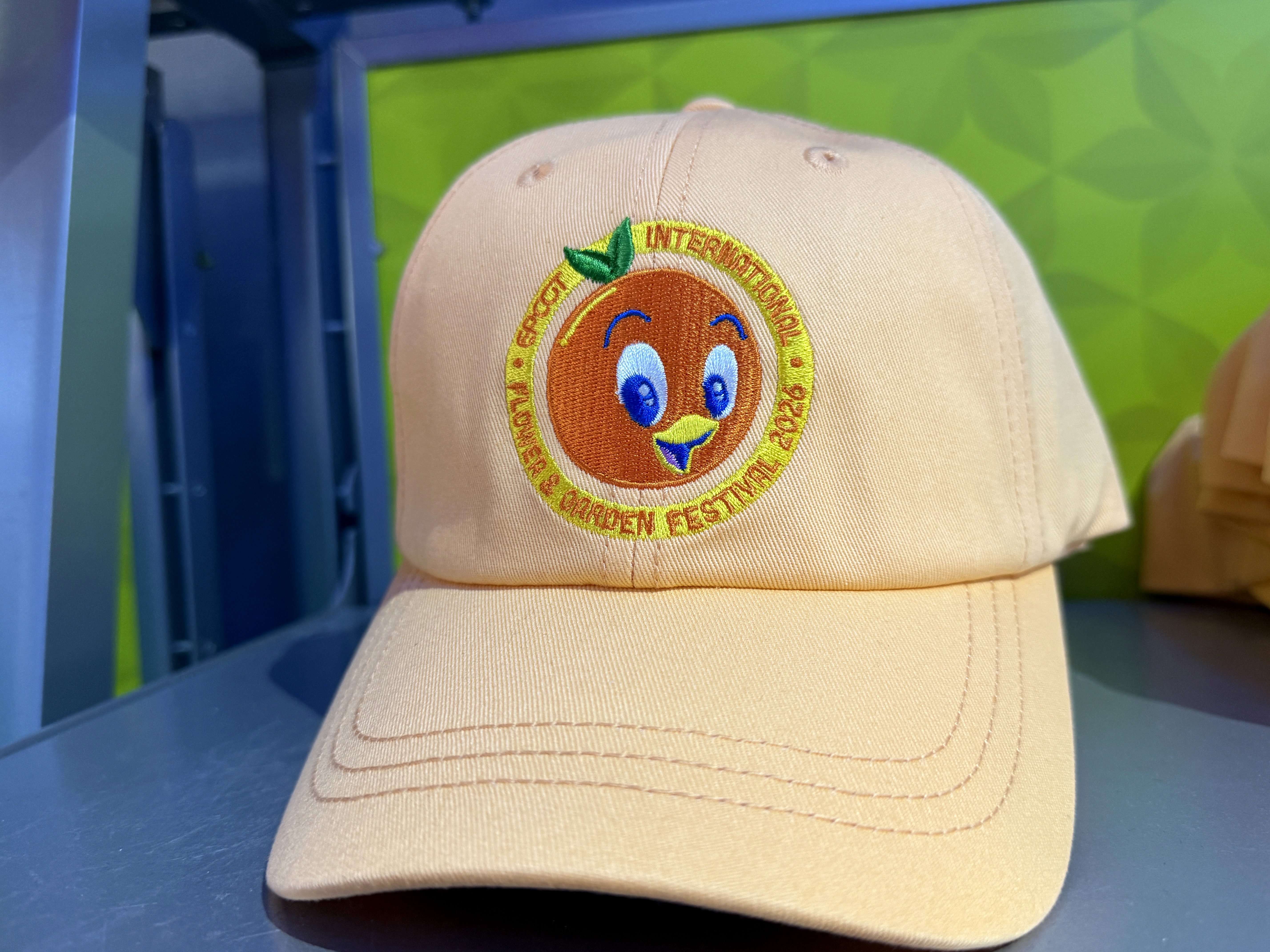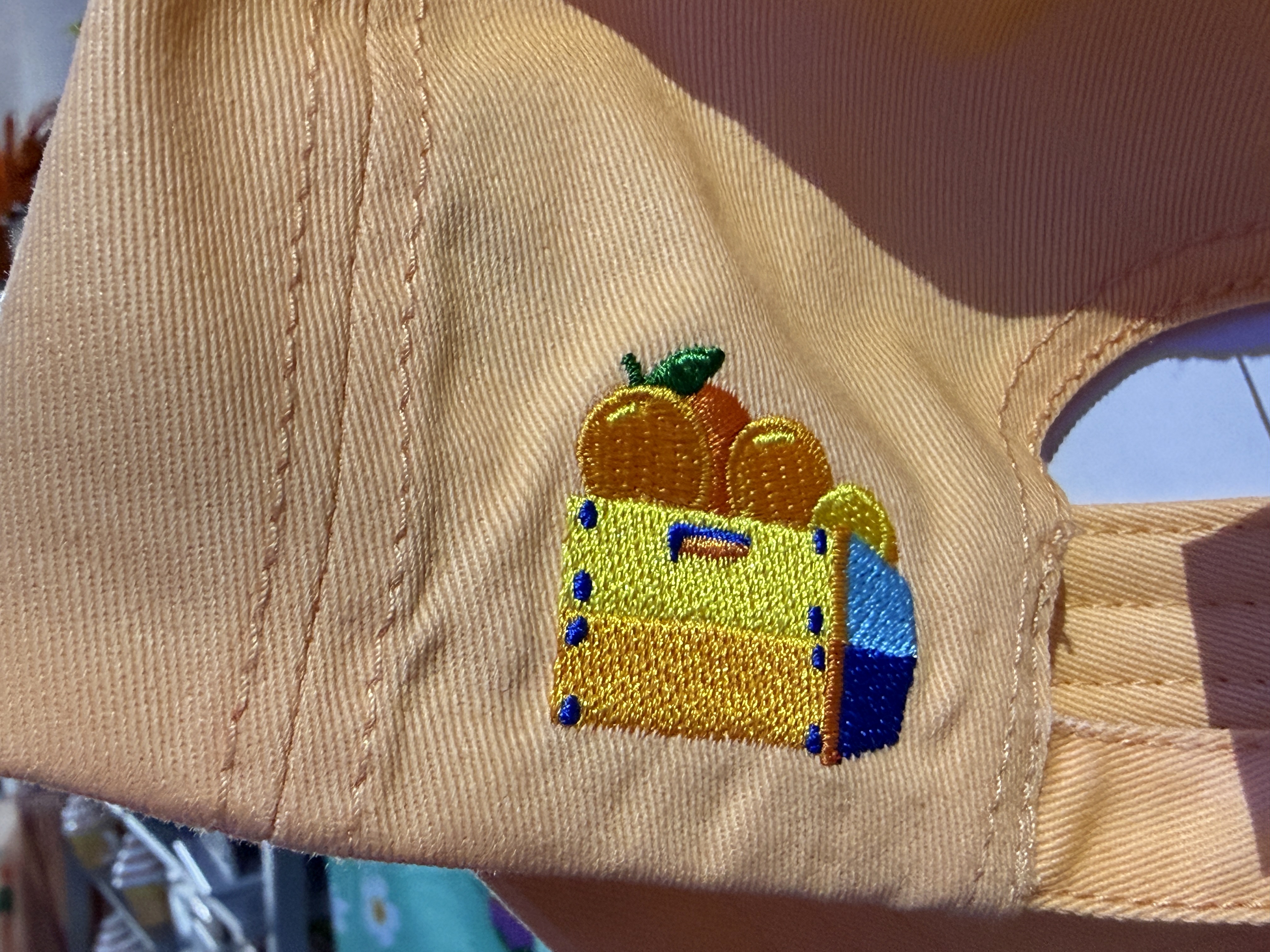 For $29.99 guests can get a bit of shade in the EPCOT sun with this Orange Bird cap that also features the crate.