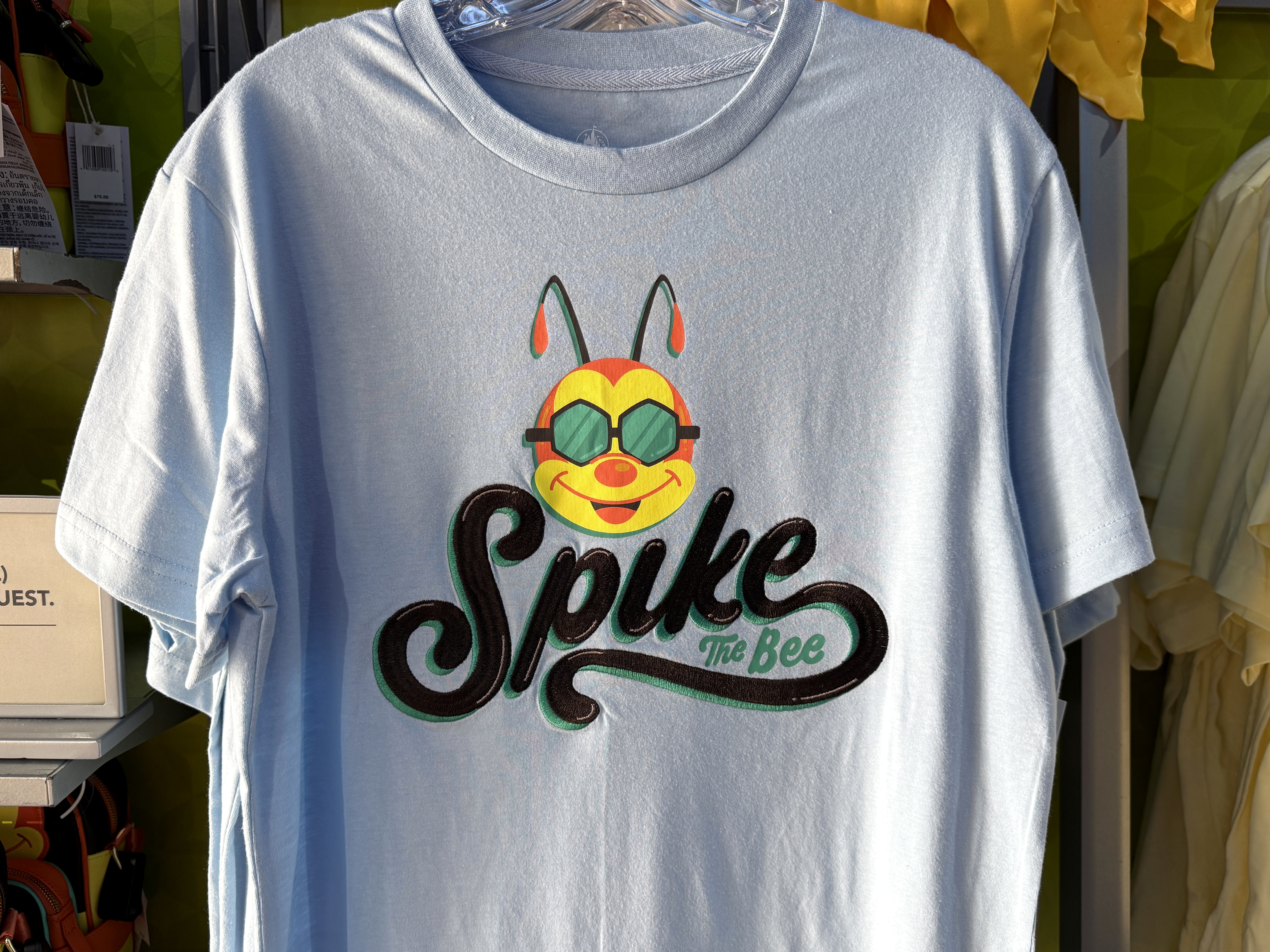 Spike the Bee is also featured on a classic tee, also for $36.99. His face, wearing shades, is also available on a new bag for $75.00, which is expected to be in high demand, with a limit of two per item per guest.