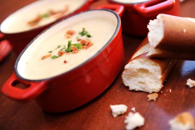 - Smoked Corned Beef with house-made potato chips, cheese curds, pickled onions, and beer cheese fondue