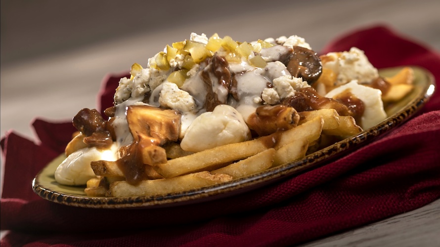 - Braised Beef Poutine: French fries with braised beef, mushroom sauce featuring Boursin Garlic & Fine Herbs Cheese, cheese curds, and gherkin relish