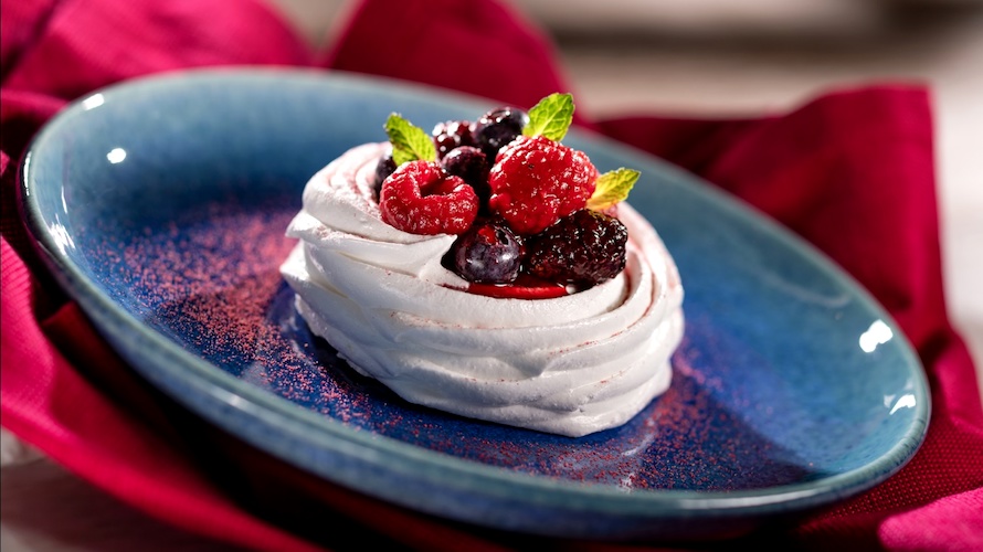 - Mixed Berry Pavlova with crunchy meringue shell, macerated berries, and whipped cream (New)