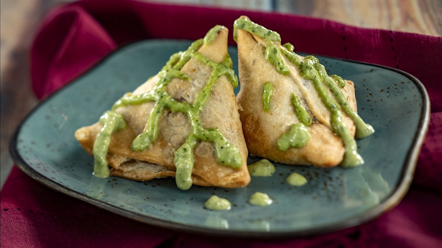 - Potato and Pea Samosas with plant-based coriander-lime cream (Plant-based)