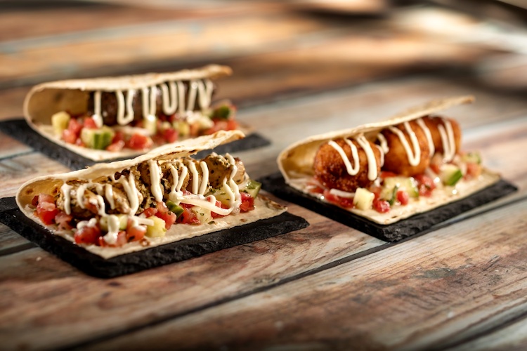 - Montreal-style Burger Slider featuring IMPOSSIBLE Beef with plant-based cheddar, tomato jam, bibb lettuce, and plant-based garlic aïoli on a sesame seed bun (Plant-based)
