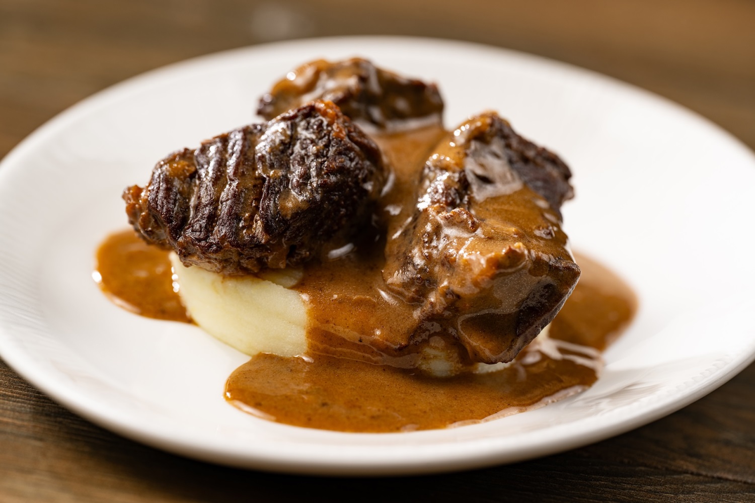 - Boeuf Bourguignon, Purée de Pommes de Terre: Red wine-braised short ribs with potato purée (New)