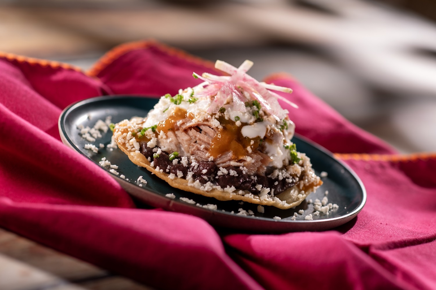 - Tostada de Carnitas: Braised Pork atop a fried corn tortilla with chipotle black beans, salsa ranchera, crema Mexicana, and queso fresco (New)