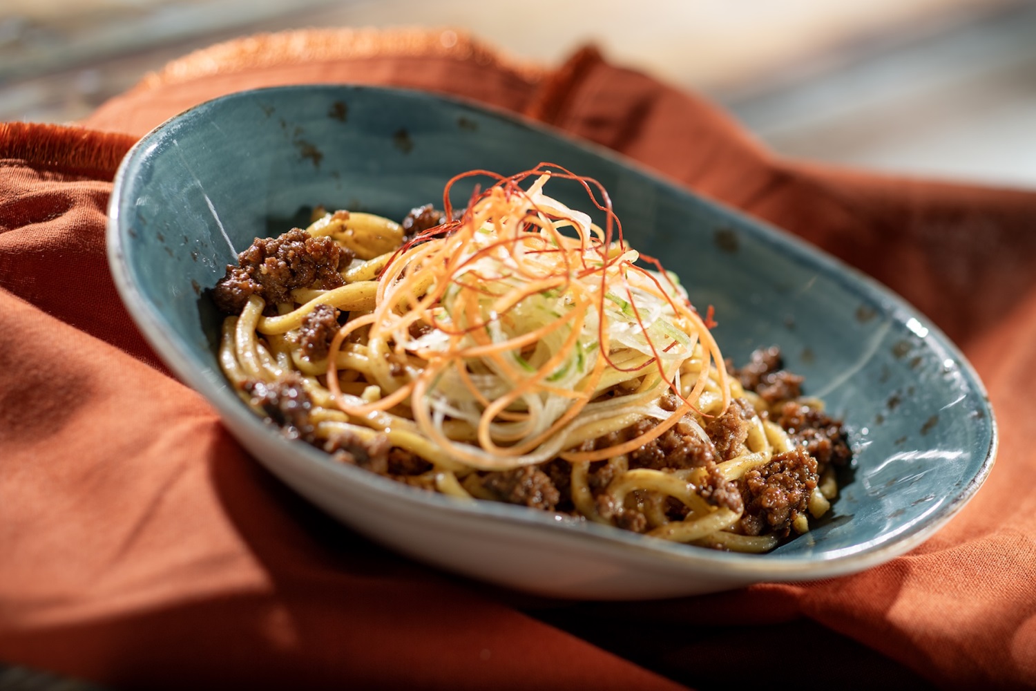 - Beijing Zhajiang Noodles with stir-fried minced beef, cucumber, chili, and carrots in a savory douban sauce (New)