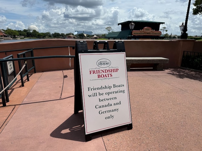 - Now, as the Morocco pavilion’s dock is closed, guests can take a unique journey aboard a Friendship boat that sees them depart in Canada, head toward the Morocco pavilion, instead veering left and floating past Japan, The American Adventure, and Italy before docking at the rarely used Germany pavilion. Or this but backwards if boarding in Germany.