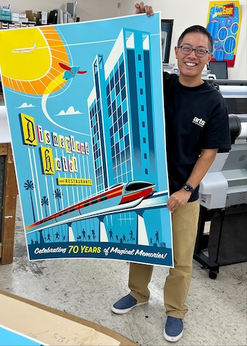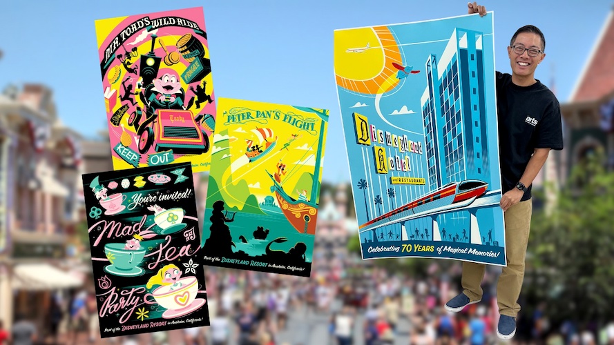 Eric Tan’s hand-screened posters capture 70 years of Disneyland magic.