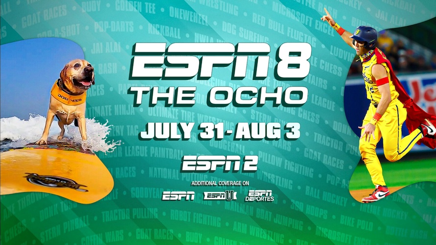 ESPN8: The Ocho is set to return for its ninth annual event from July 31 to August 3. This year's installment promises over 65 hours of unconventional sports content across ESPN, ESPN2, ESPNU, ESPN Deportes, and various ESPN digital platforms.