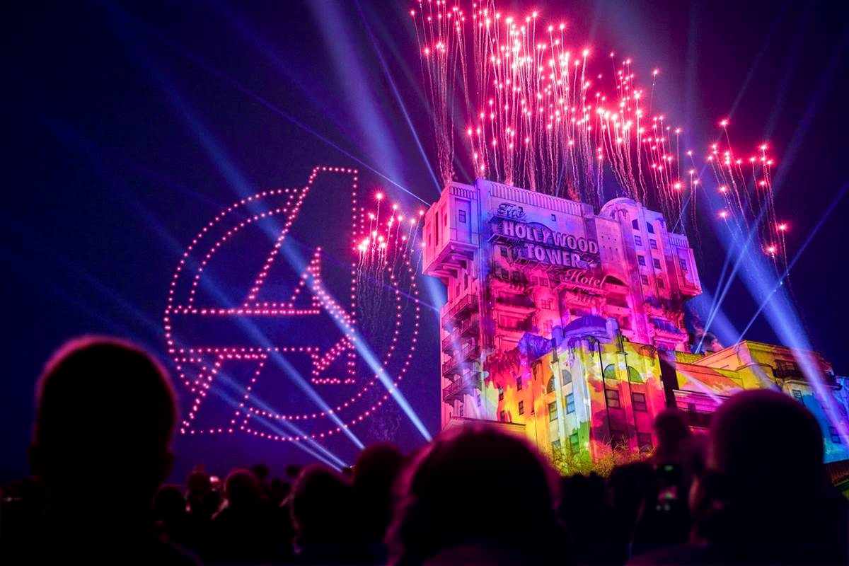 Now if you’re thinking to yourself, “Is this show exactly what I think it is?” I’d have to say yes and no. F.R.I.D.A.Y. recruited the entire crowd to help become Avengers, helped along by nighttime projections on the Tower of Terror as well as some drones and fireworks. The giant Tower of Terror was a perfect backdrop for the show, with plenty of space and some really high quality imagery available for animated characters.