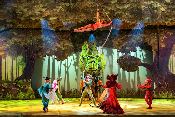 Tarzan came on stage with a big roar and rope swing in, which would come in handy when he then climbed up the rope. While one of the singers sang “Son of Man," Tarzan did some Cirque de Soleil style tricks on the vine and it seemed like he was going to get pretty dizzy. With one’s head on a swivel like that, it was kind of a shock to see this giant gorilla head come on stage to represent his family.