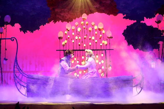Not to be outdone, Rapunzel was next on stage and got to sing herself with a rendition of the reprise of “When Will My Life Begin." After setting the tone, one could see Flynn Rider in the shadows before he emerged to sing a very French-accented duet with Rapunzel while on a cute little log. Unlike many of the other French shows, the Forest of Enchantment stuck to English exclusively throughout.