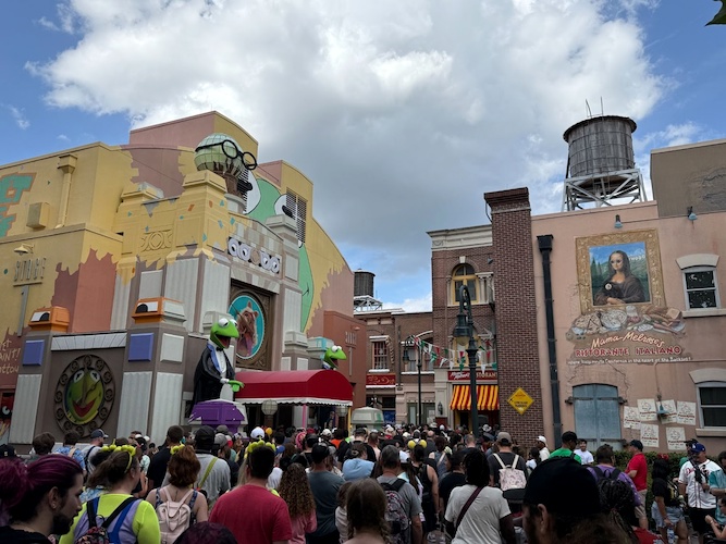 Laughing Place had a chance to visit the Walt Disney World theme park today to get one final look at the area ahead of the transformation. With thousands of fans in attendance, the line for Muppet*Vision 3D extended all the way into Galaxy’s Edge. It was great to see such an outpour of love for The Muppets as they prepare for their move to Sunset Boulevard. Let’s take a look around the area one final time, including a video tour, photos, and a look at the final door closing of Muppet*Vision 3D!