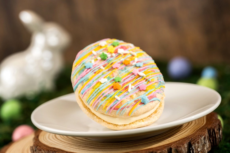 - Painted Egg Whoopie Pie: Cinnamon sponge cake with maple buttercream filling topped with pastel chocolate and springtime sprinkles (New)