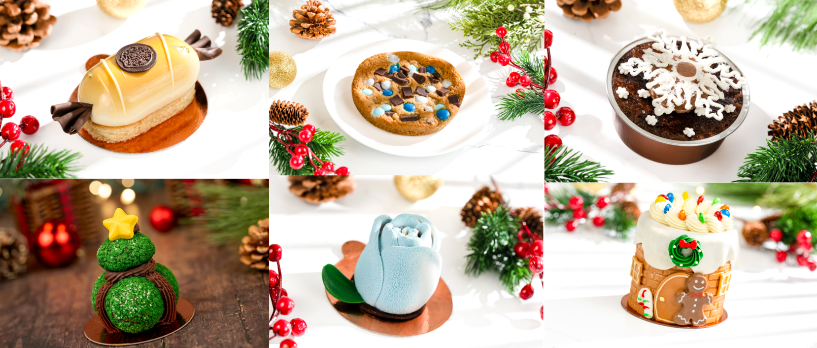 - Frosted Winter Rose: Chocolate biscuit with dark chocolate mousse and raspberry filling (New)